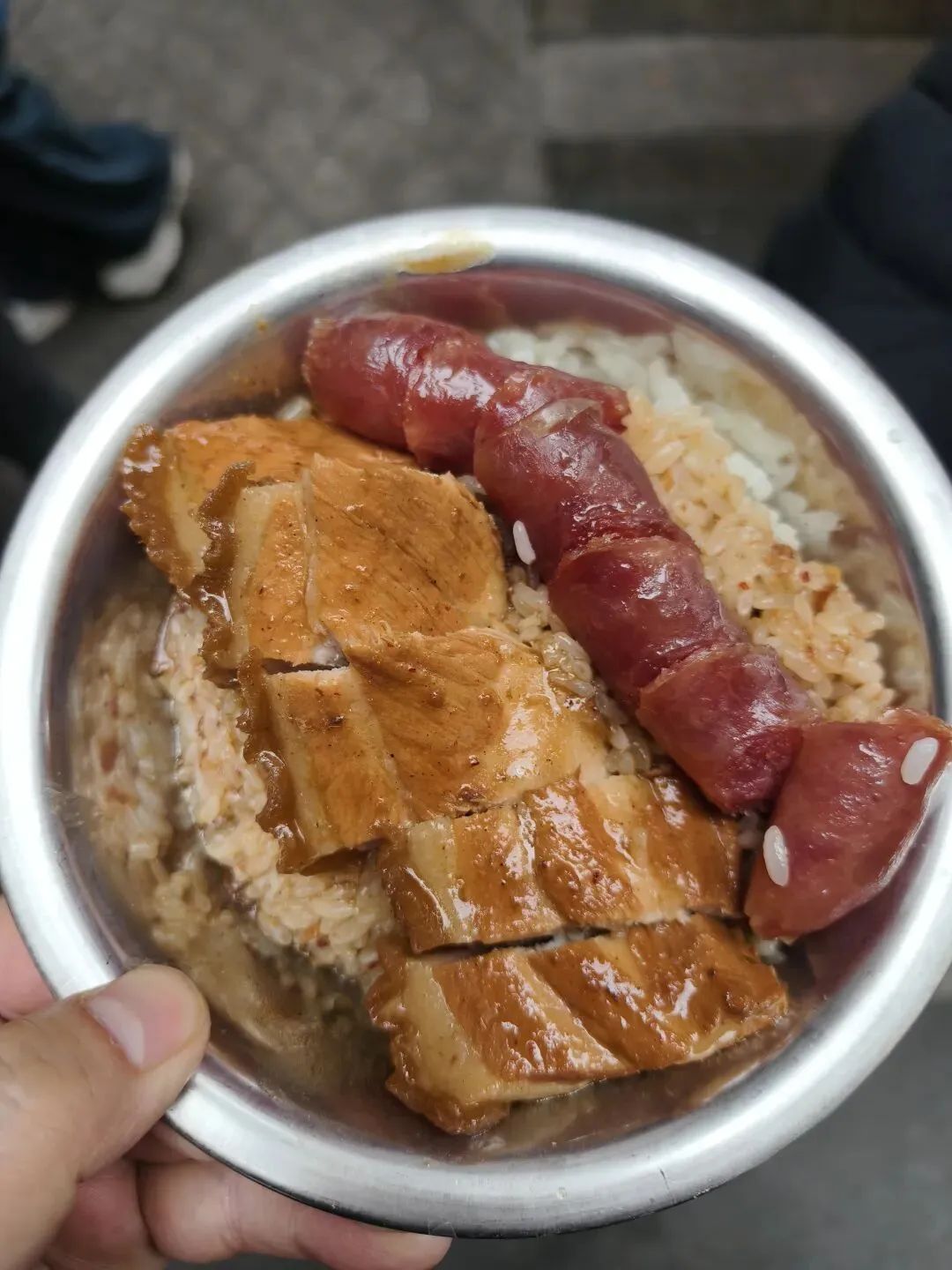 腊肠扣肉糯米饭不辣,风味不错,跟广东煮法的其实差不多。