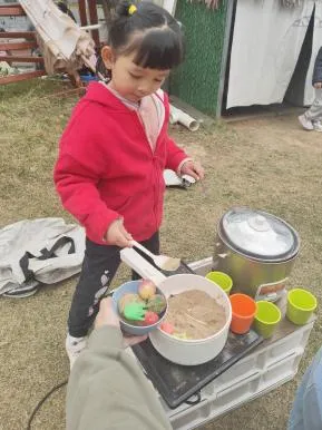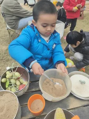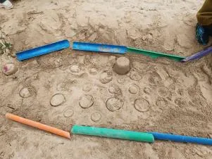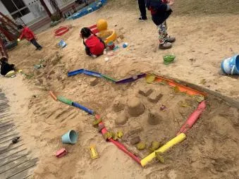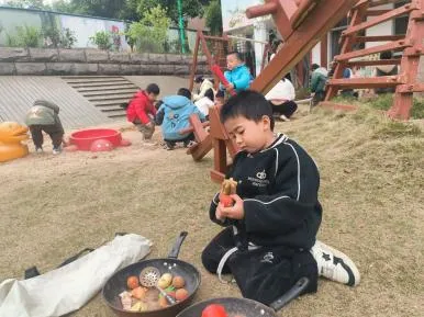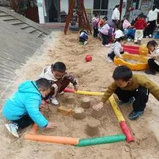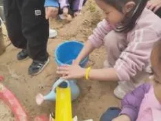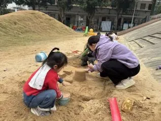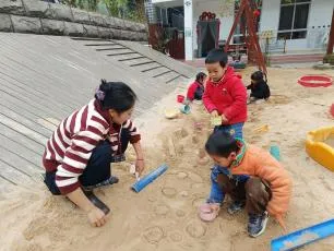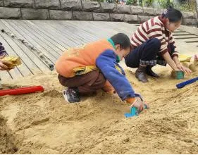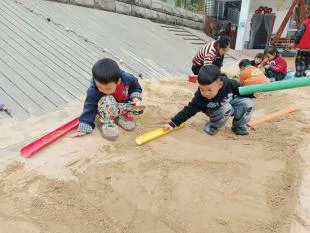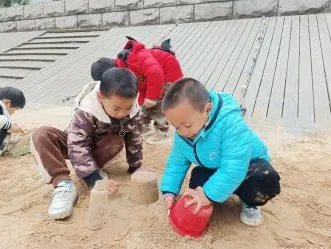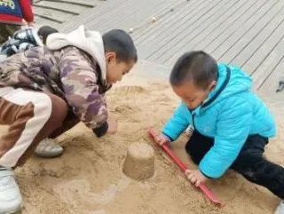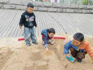 有了第一次的经验,幼儿搭建动作更为流畅,自然形成搭建和平整沙池的分工,并在教师的提示下提出用自然装饰城堡,体现了良好的学习迁移的能力。