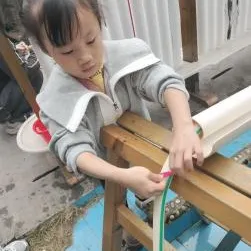 在搭建中遇水管易滑脱问题,幼儿完全自主解决——先用扭扭棒缠绕加固,发现松动后,又自主取白色圆管套住,双重防护成功攻克难题。