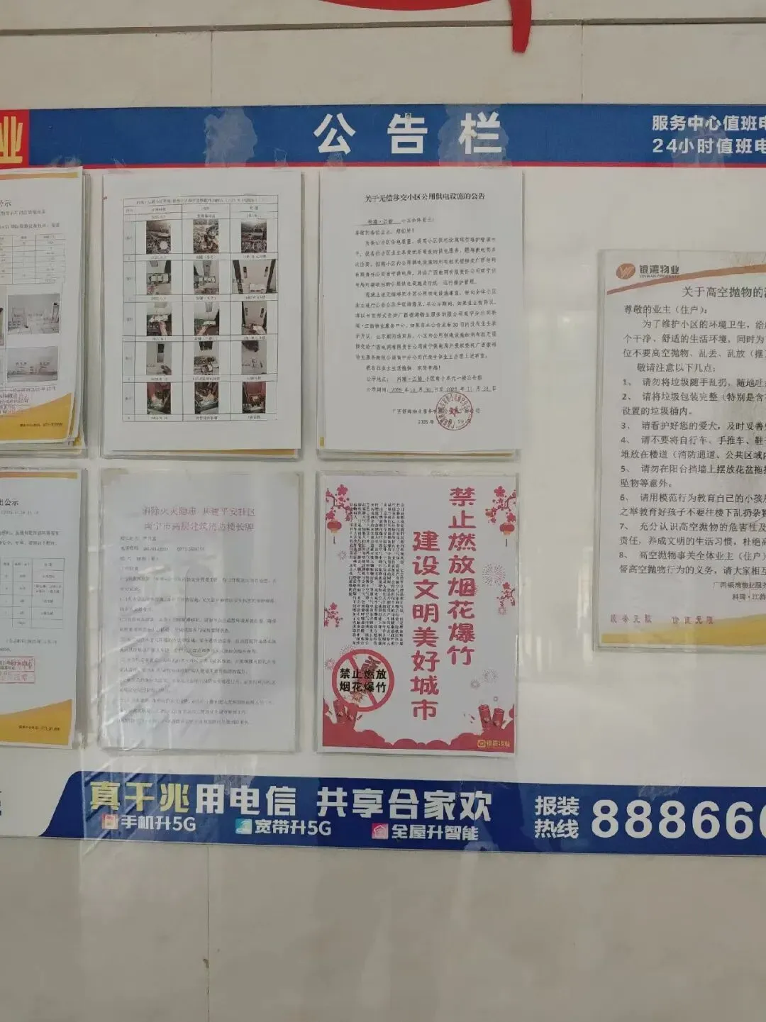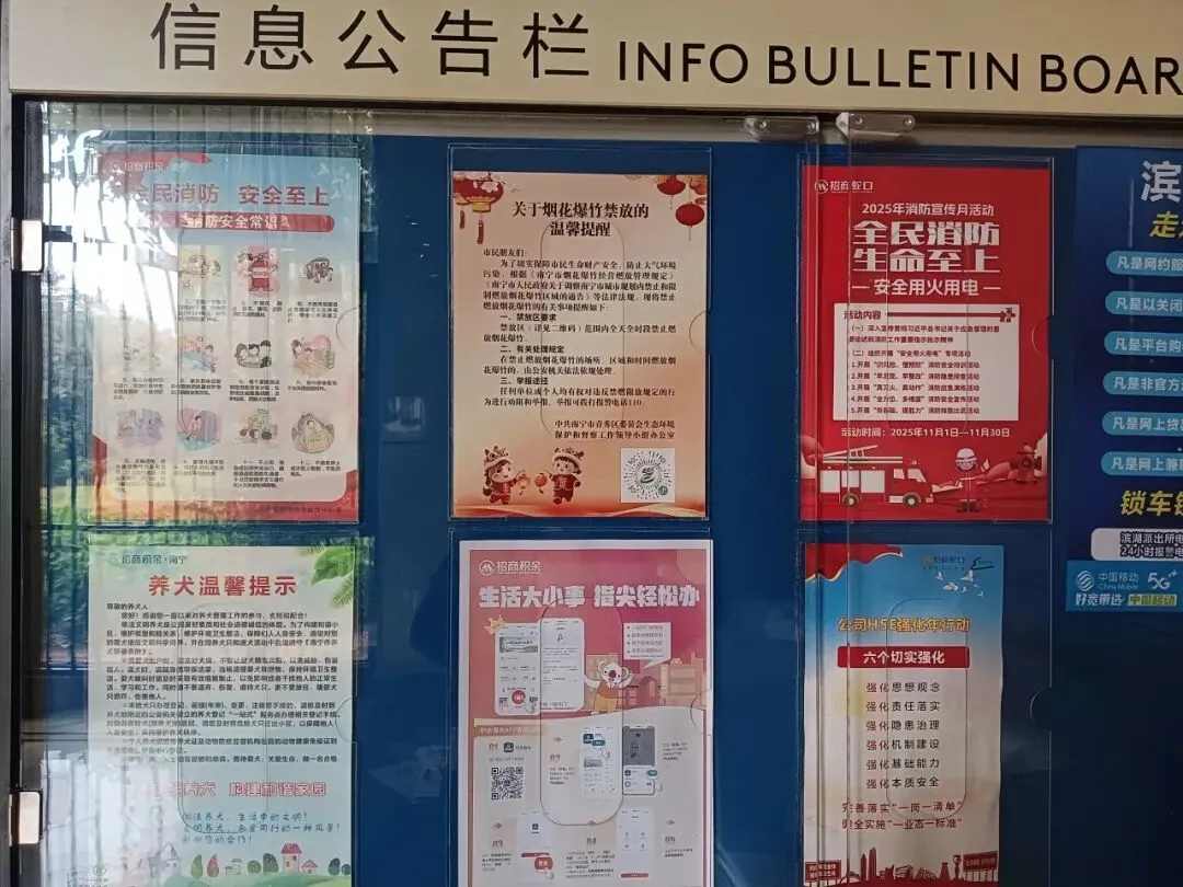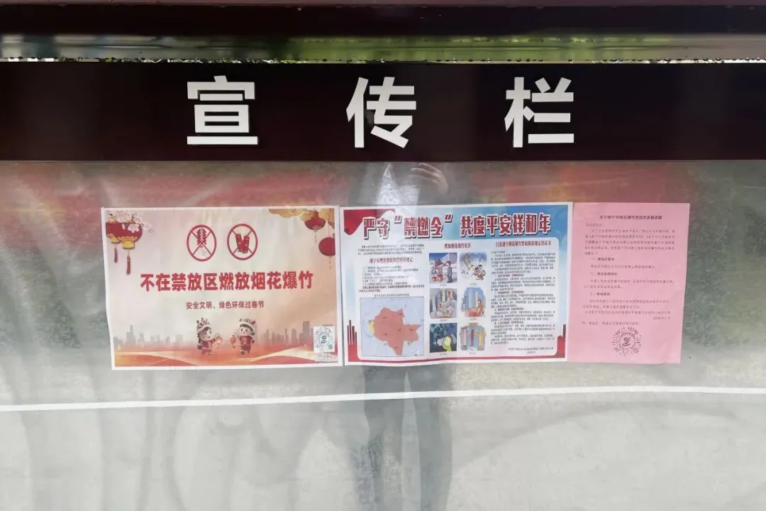在小区宣传栏广泛张贴禁燃限放海报,并在业主群发布相关温馨提醒,引导业主共同守护美好家园。