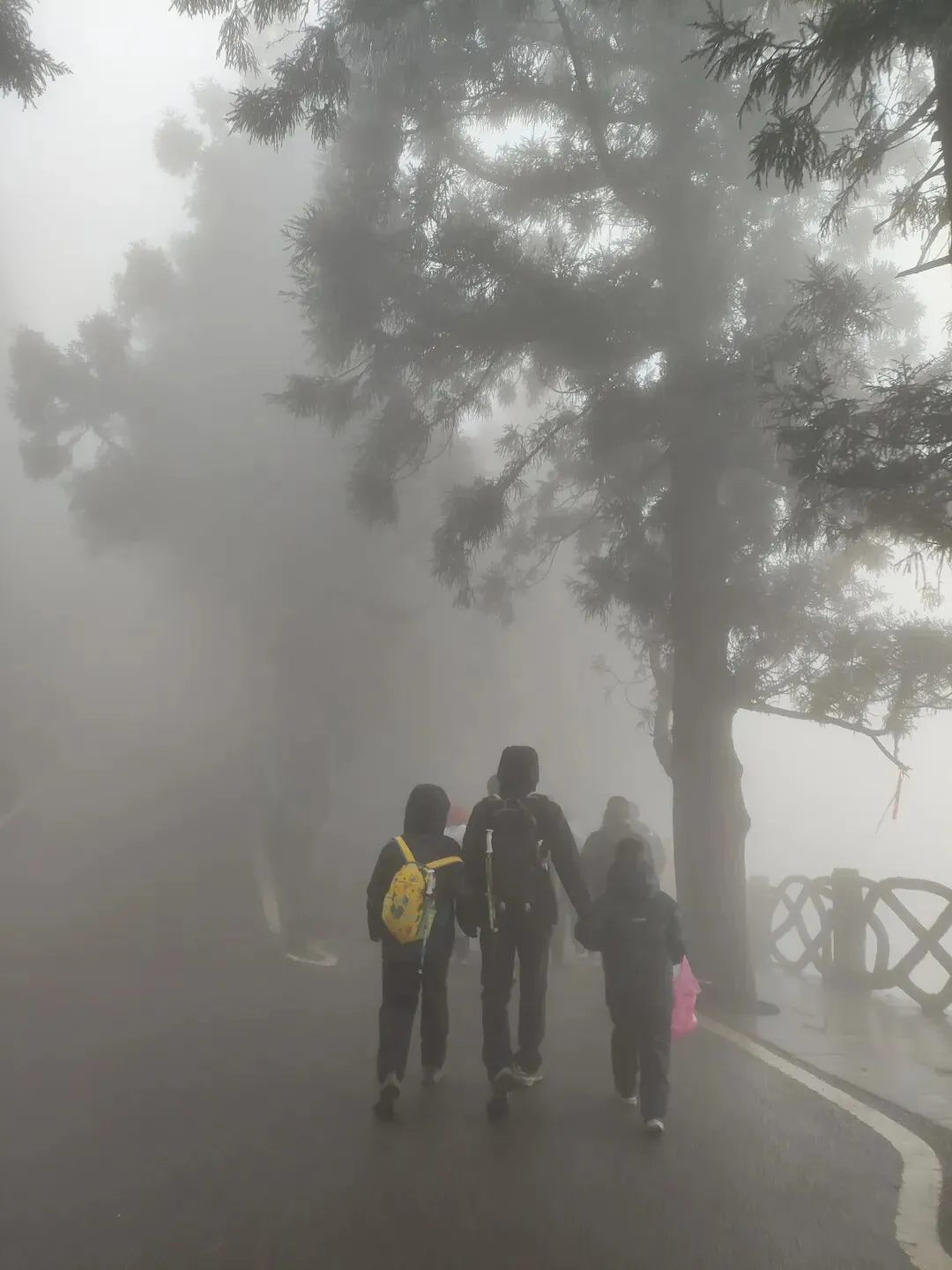 从山脚走路上山的游客很多,一路非常热闹。只是万万没想到0度天气穿着厚重羽绒服爬山似乎完全走不动。走起来时非常热,如果脱下衣服停下又非常冷,湿冷的风一刮过来又觉得头冻到疼,这体验真是酸爽刺激。
