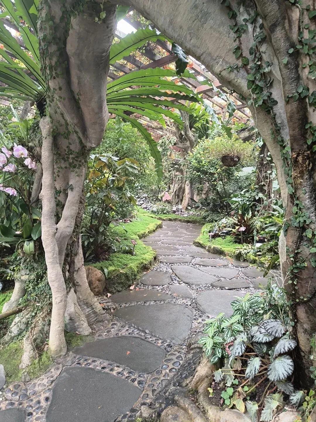 萌生植物园旁便是兰花园。园内多是蝴蝶兰,各色品种沿路舒展,宛如豆蔻少女,低眉含笑,似在静静等候知音来访。