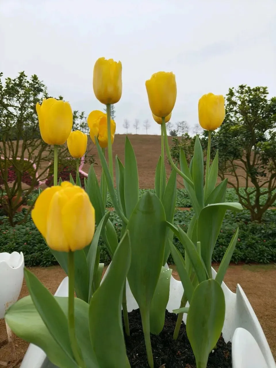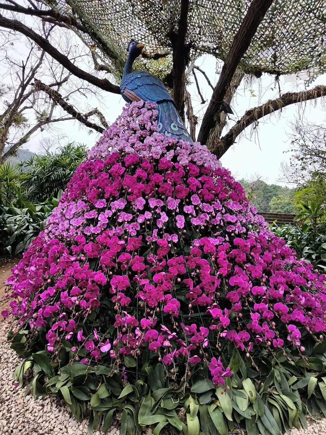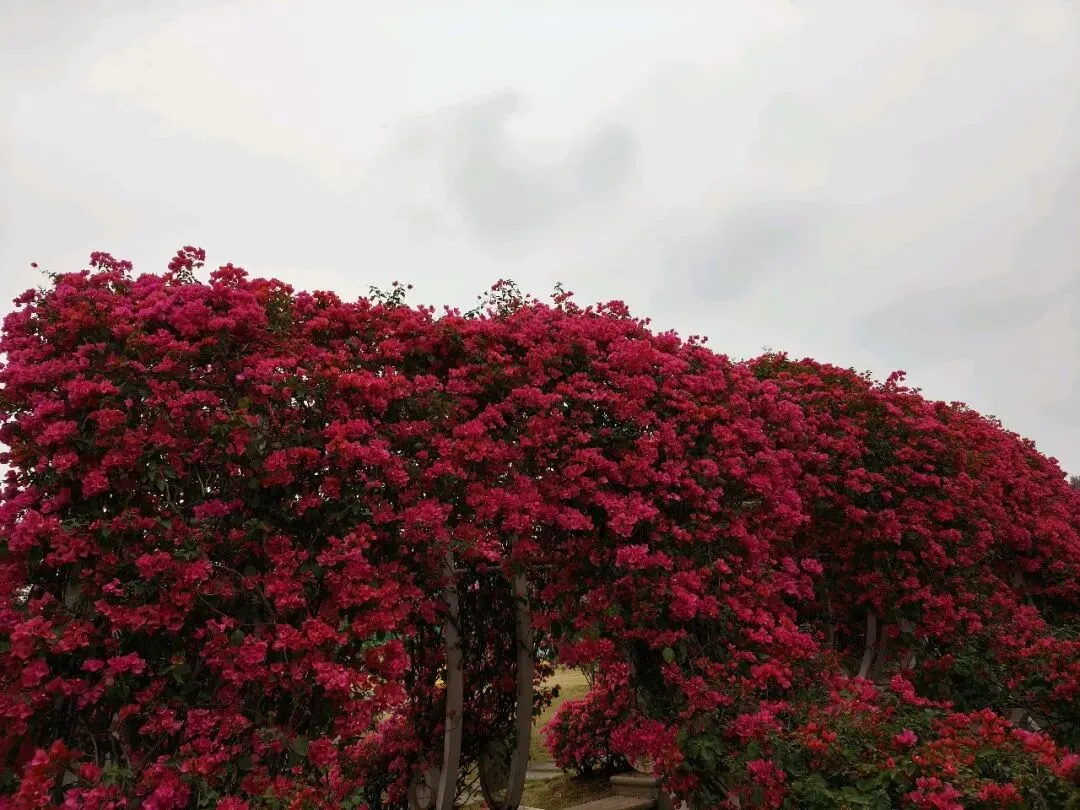 乘观光车继续前行,便来到苏铁园。沿岔路向上,四周铁树环立,高大苍古,散发出一种肃穆的庄严。最引人注目的,是那株被称为“苏铁王”的古树,已历经一千三百六十余载春秋。它静立于众树之间,如一位慈祥长者,平和睿智,庄严从容。千年风雨,不改其姿,这般“宠辱不惊”的气度,何尝不是一种至深的人生境界? 午后,我们乘车往东门方向去。叶子花径两旁,三角梅开得烂漫——玫红、粉白、金黄、嫩绿……远远望去,仿佛一片流动的花海。不远处的竹园,绿竹依道而立,枝叶交错成弧,如天然篷盖,为行人遮阳挡雨。再行约一公里,郁金香乐园跃入眼帘。各色郁金香正盛放如火、如霞、如雪、如金,步步移景,令人心醉神迷。