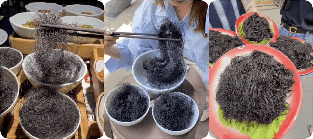 上周去南宁玩,火锅店菜单上看到个东西叫啥来着,反正端上来我傻眼了,一盘真·头发丝!!细细长长一根根的,我盯着看了半天不敢下筷子