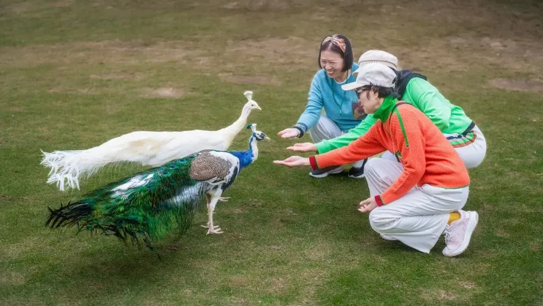 踏入青秀山,我们首先路过了孔雀园。只见三五成群的孔雀在翠绿的草坪上悠闲地踱步,它们五彩斑斓的羽毛散发着迷人的光芒。这些美丽的生灵,吸引人们情不自禁地想要靠近、再靠近,大家纷纷拿出手中的食物,希望能吸引到孔雀,在孔雀不断靠近之时,时间仿佛静止了,一幅人与自然和谐共处的美好画面就此上演。