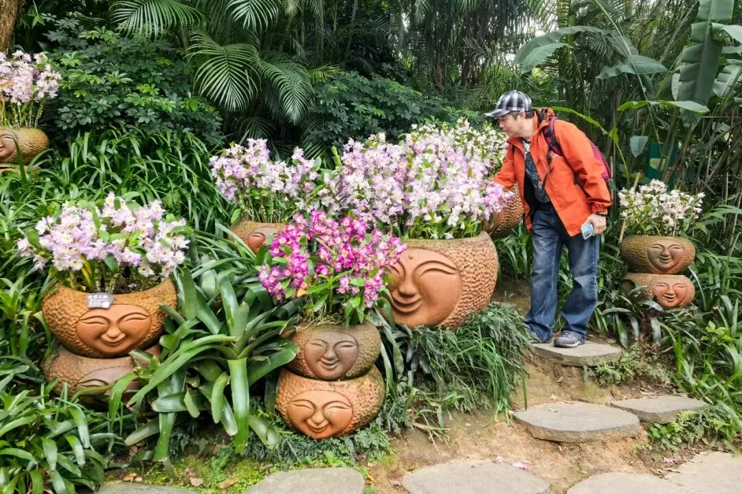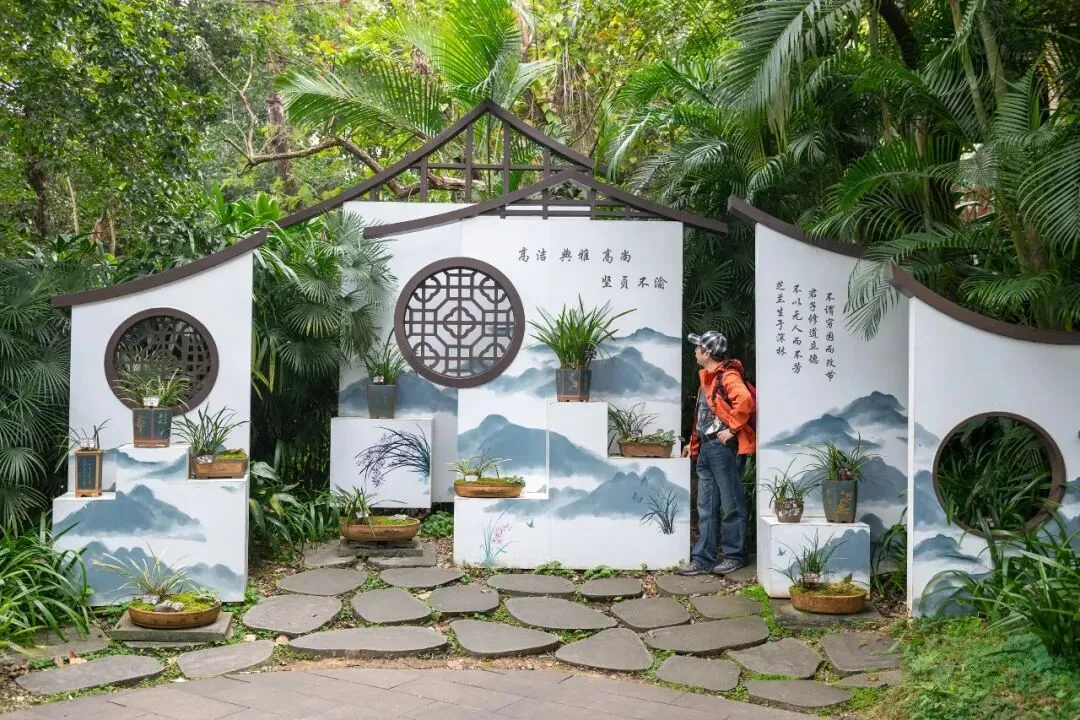 沿着山路前行,我们来到了位于高处的空中花园。这里繁花似锦,其中兰花更是占据了主角的位置。一盆盆兰花姿态各异,有的优雅地舒展着花瓣,有的羞涩地半掩着花蕊,散发着淡淡的清香,让人仿佛置身于花的海洋。