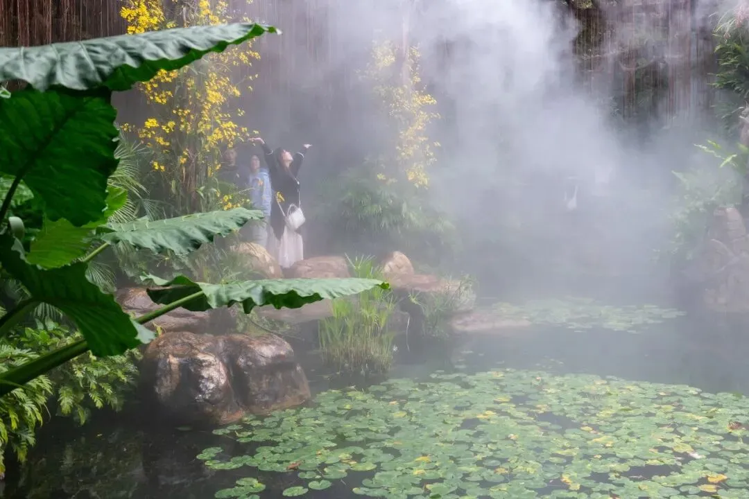 萌生植物园则充满了梦幻的气息。这里主打一个“萌”字,还有着如仙境般的仙气。每当雾气缓缓升起,整个植物园就像被一层薄纱笼罩,游客们仿佛坠入了仙境一般。这里生长着许多稀有植物,我虽不做科普讲解,但还是忍不住用相机捕捉那些有趣的植物。园内有人造丁达尔光的装置,若有太阳,那效果想必会非常震撼。此时雾气飘渺,如梦如幻,仿佛走进了一场童话世界。