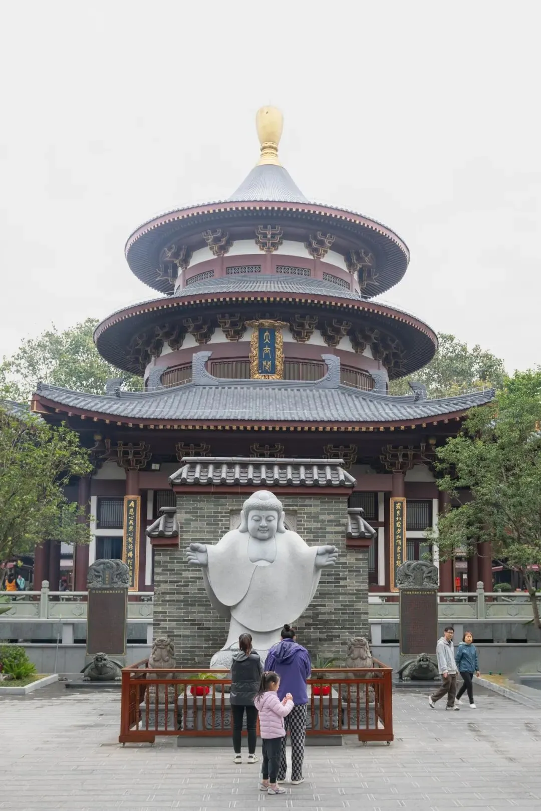 观音禅寺是青秀山的一处人文胜景。令人意想不到的是,门口迎香客的观音竟然是卡通形象,可爱得让人忍俊不禁。观音寺旁有三个观景亭,其中一个名为夕醉亭。站在观景台上,俯瞰南宁市的市景,高楼大厦林立,错落有致地分布在城市之中,仿佛在无声地诉说着这座城市的繁荣与发展。
