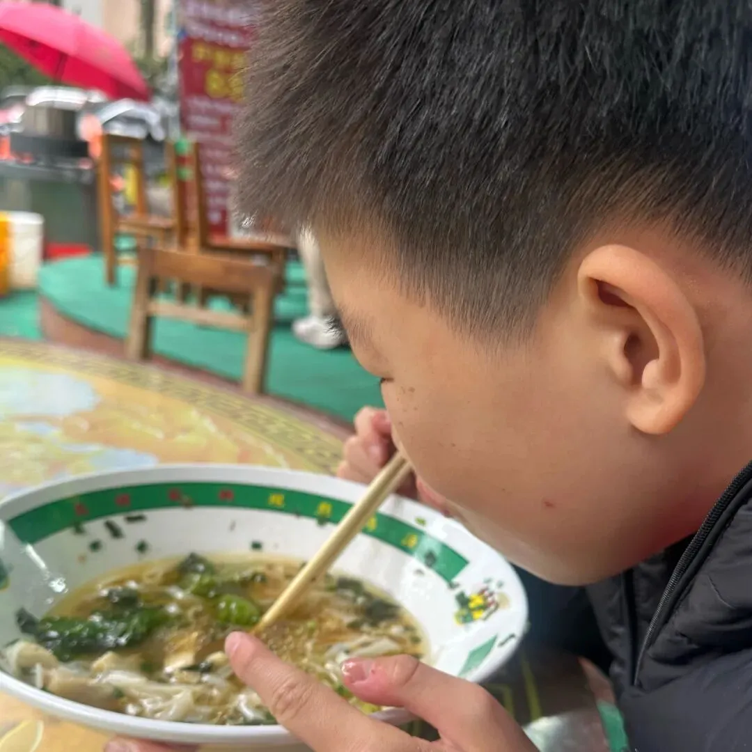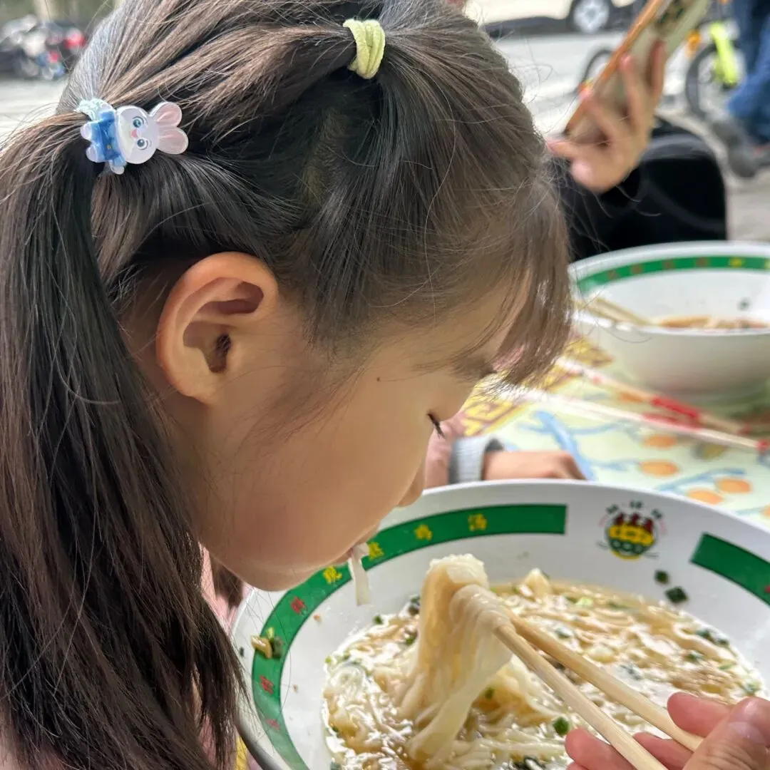 南宁的粉种类很多:老友粉、螺蛳粉、生榨粉等等,这些粉各有特色,味道浓郁,但是都有些辣,不太适合带孩子一起吃。而且粉店一般就只专注于做一种粉,所以带着孩子很难痛快的嗦粉。离开南宁的前一天,跟着网上一个博主vlog的推荐,我们打车来到了这家粉店。跟我想象得一样,鸡汤清亮鲜美,鸡肉紧实弹牙,喝一口热汤简直太治愈了。