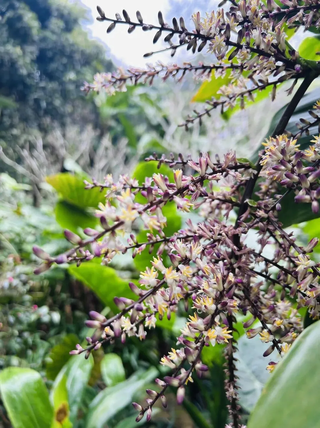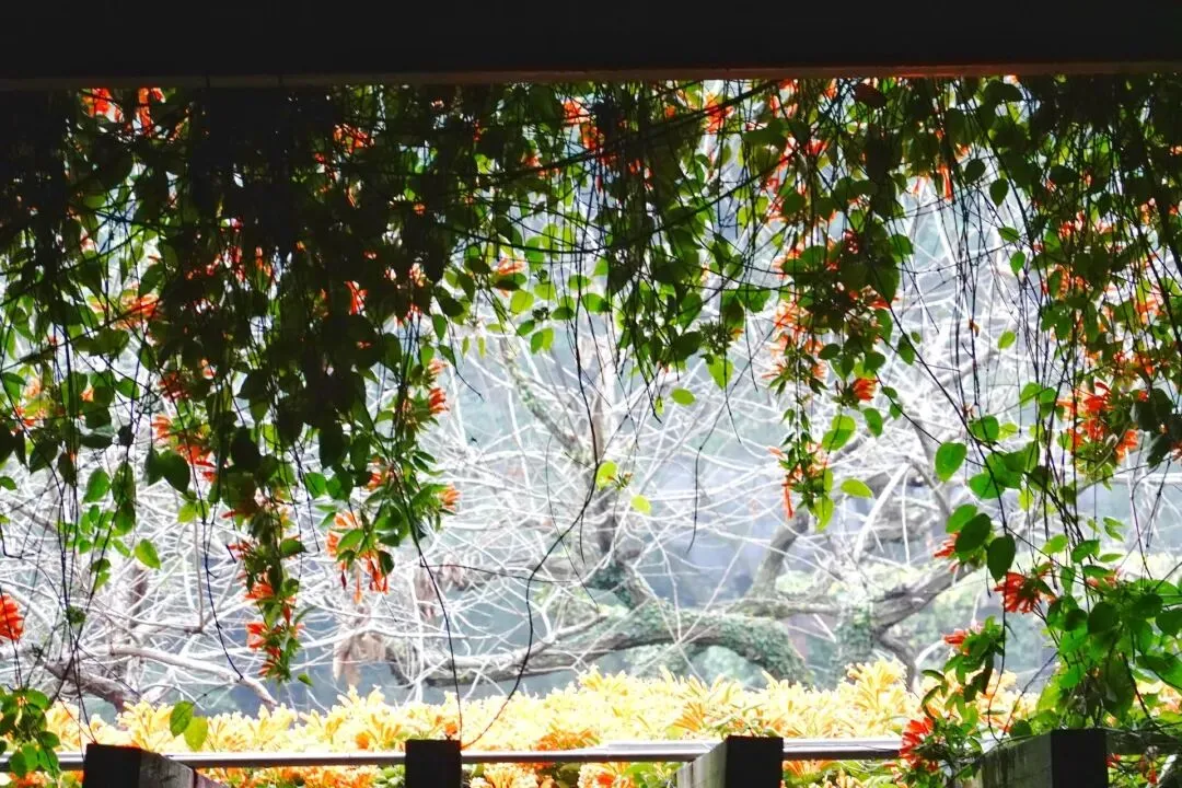 2月4日下午两点半至南宁东高铁站,打的去会展中心智选假日酒店,稍作休整,准备去青秀山,打了可以连游三日的门票,大概四点半从北门入园。入口处不远就是大火的荫生公园,十五分钟会喷一次雾,喷雾时如入绿野仙踪,园内上空开着热烈的如炮仗样的橙色火烧花,细细的长绳子是圆圆的苔藓球,树上绑缚着大大小小颜色各异的石斛花,还看到了黄色的茶花,学名金茶。锦屏藤垂下来的藤蔓密集又整齐,如一帘幽梦。大树边有各种各样的蕨类,还有不知名的秋海棠和叫不上名字的蔓绿绒。感觉到了植物王国,看植物名字都看不赢,只顾上惊叹了。