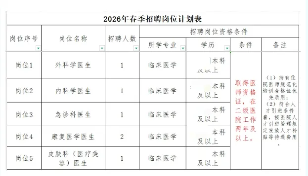 根据医院业务发展需求,现向社会公开招聘以下岗位人员,具体招聘事宜如下: