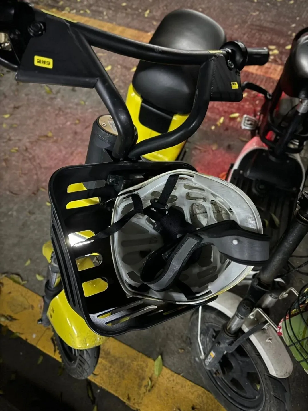 我在路.边看到.很多共.享电动.车,头盔就.那么.挂在.车把上。你知道.在很多地.方,这种.头盔要.么是被.剪断绳子.拿走了,要么.就是脏.得没.法戴。