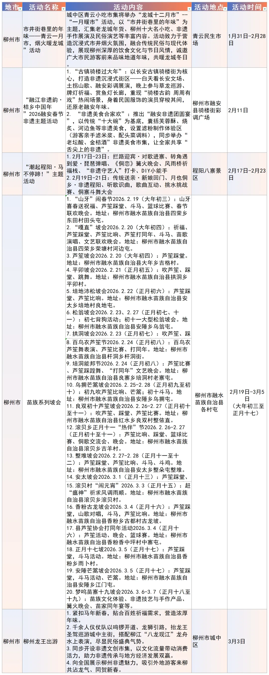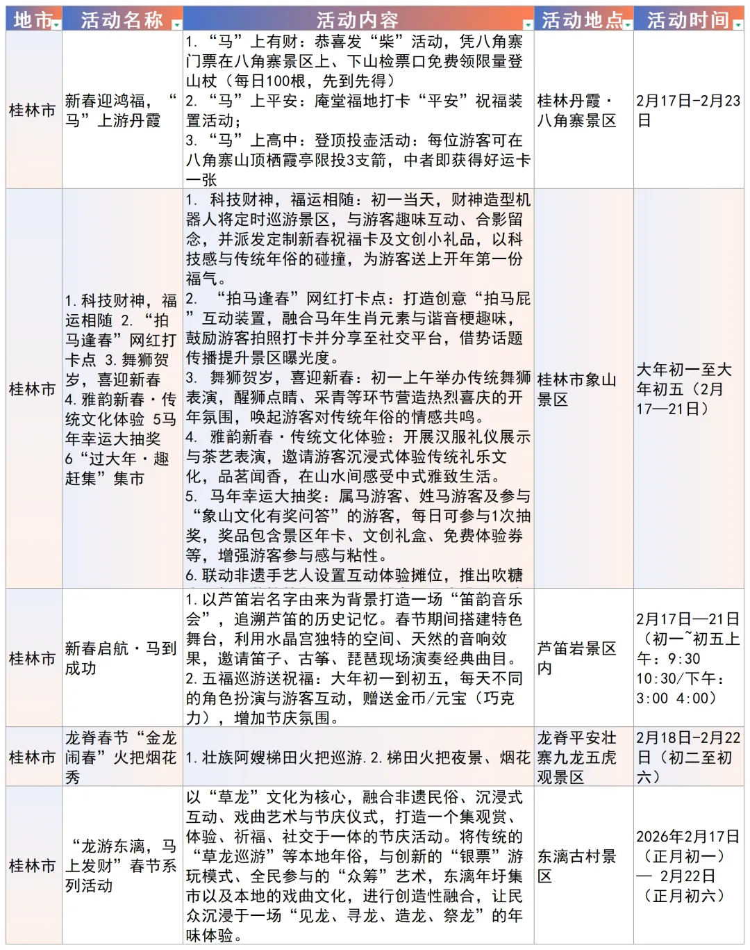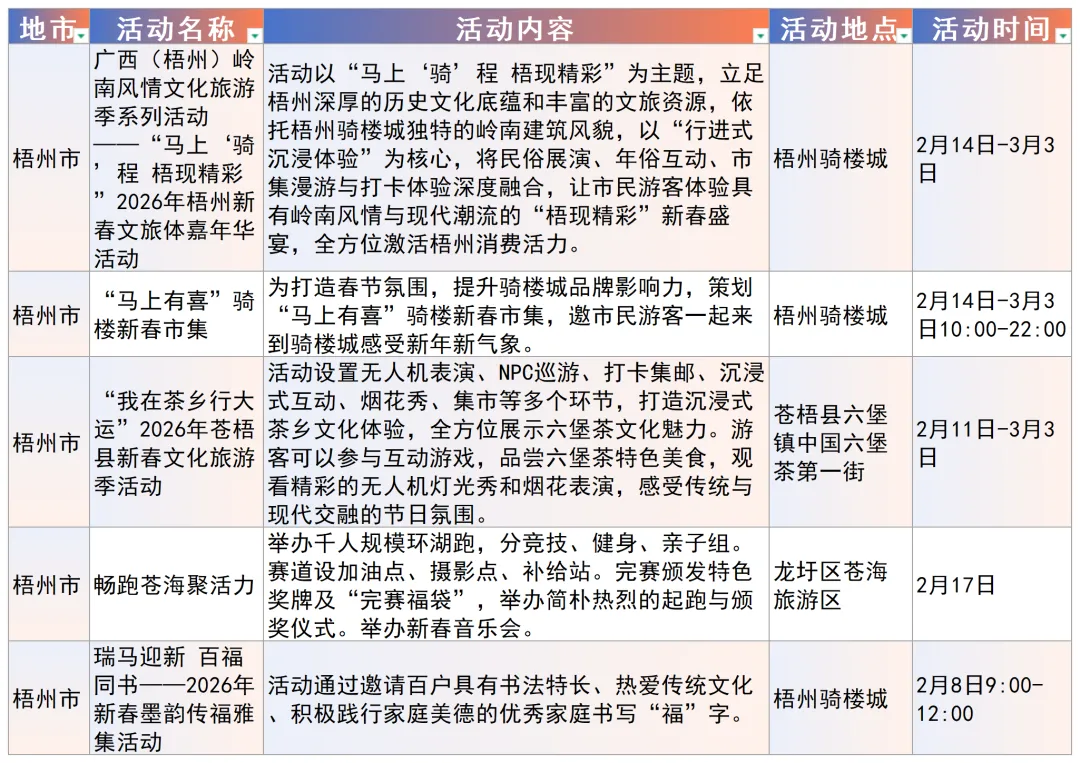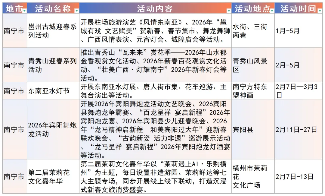 以下为南宁市、柳州市、桂林市、梧州市重点文旅活动安排(★活动详情以当地最新公布信息为准。)/////