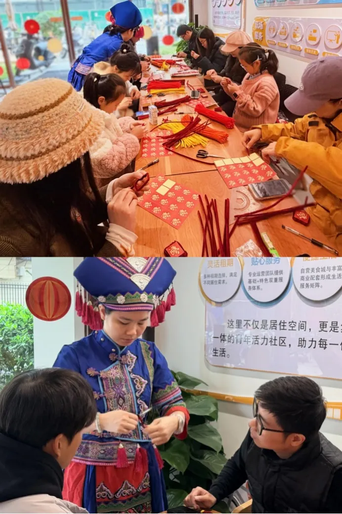 除主题体验活动外,轨道剧场公寓还推出贯穿节前节后的全方位关怀服务,以细致举措为青年人才保驾护航。自1月中旬起,通过线上问卷精准摸排青年需求,开展空置房安全巡查排除潜在风险,及时推送出行提示、节日祝福,同步筹备慰问礼包送到青年手中,24小时服务热线随时响应各类诉求。细致周全的服务覆盖返乡、留邕两类青年群体,切实让每一位居住在轨道剧场公寓的青年都能安心过年。