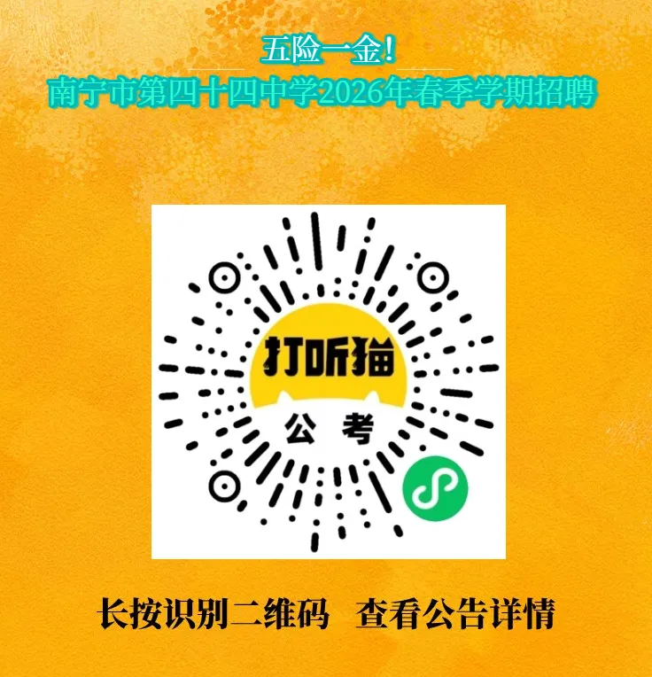 【南宁招聘】五险一金!南宁市第四十四中学2026年春季学期招聘!