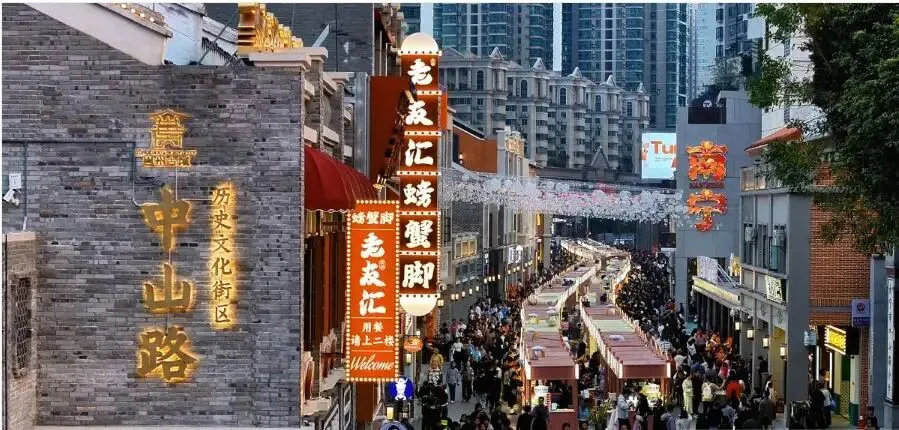 2月6日,中山路与水街、三街两巷共同构成完整的历史文化街区,形成广西规模最大的沉浸式步行街区——邕州古城。该区域以“历史传承、文化体验、美食休闲”为核心定位,打造“城市人文会客厅”。