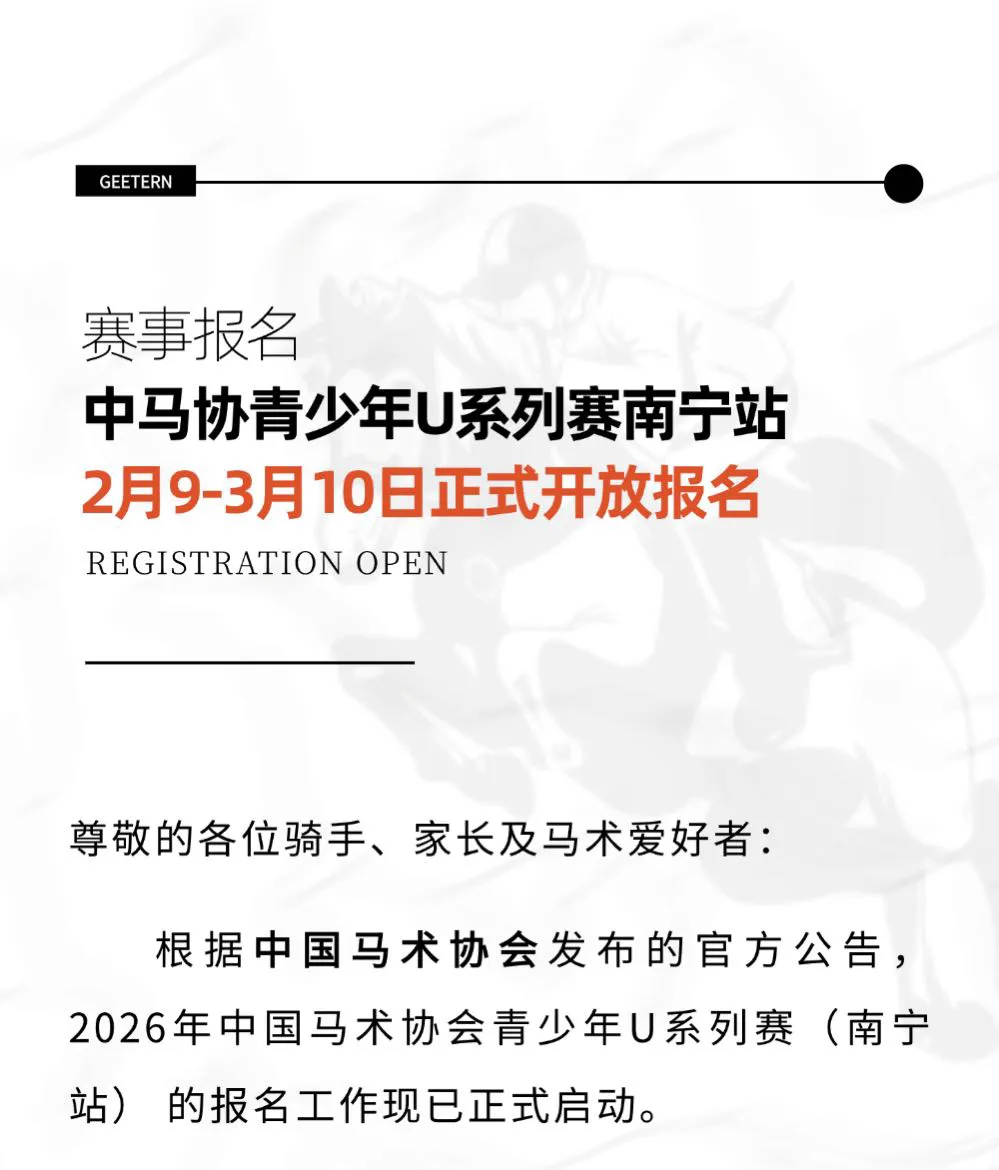 中马协关于举办2026年中国马术协会青少年U系列赛(南宁站)的通知