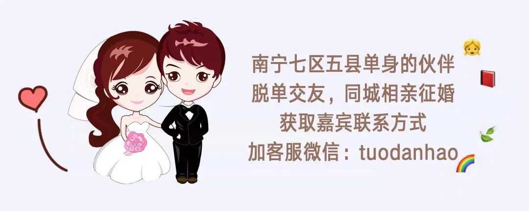 温馨提醒:相关信息的真实性请进一步核实,相亲过程中,一定要提高保护意识,没有足够自我保护意识请别参与,涉经济往来的切莫上当受骗,相亲过程中双方发生的不愉快事件与牵线人无关。——南宁同城相亲