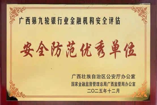 近日,广西第九轮银行业金融机构安全评估结果正式公布。在广西壮族自治区公安厅与国家金融监督管理总局广西监管局的联合评审中,南宁市区联社连续九轮荣获“安全防范优秀单位”称号,安全建设工作再获认可。