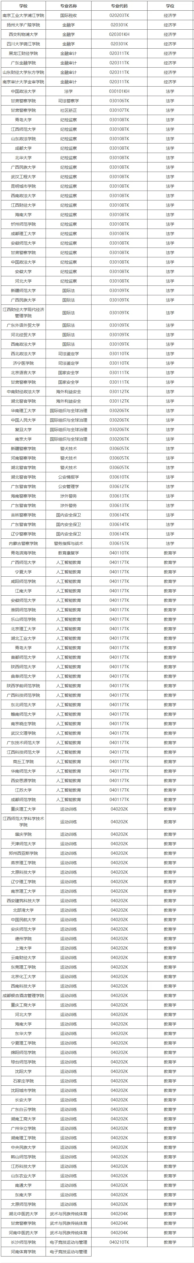 北京体育大学、首都体育学院、河北体育学院、沈阳体育学院、吉林体育学院、南京体育学院、武汉体育学院、成都体育学院、西安体育学院