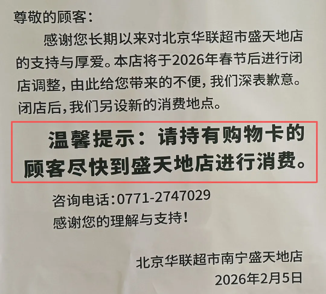那么问题来了,作为“华联系”超市在南宁的“独苗”,盛天地店的关闭是否意味着北京华联将彻底退出南宁市场呢?