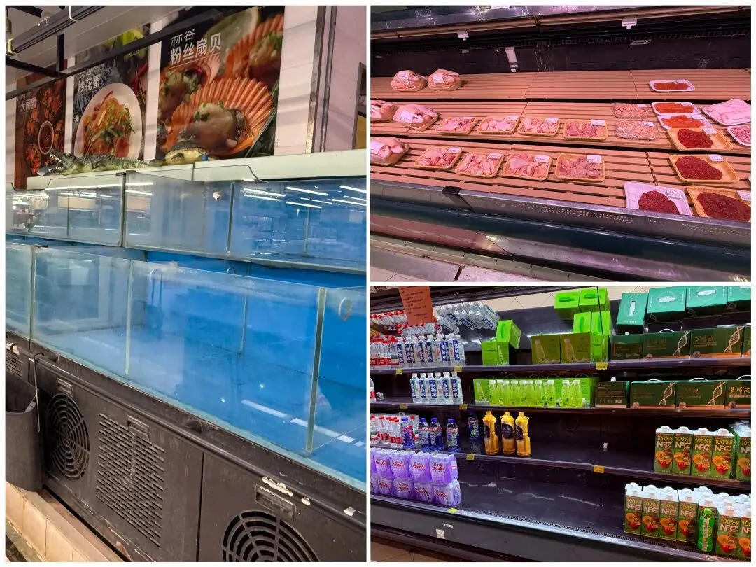 肉品、水产、蔬菜等档口中,不少产品被搬空,部分商品也不再补货。