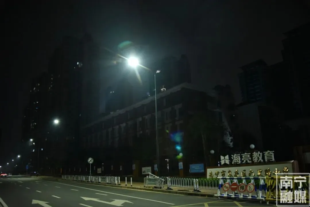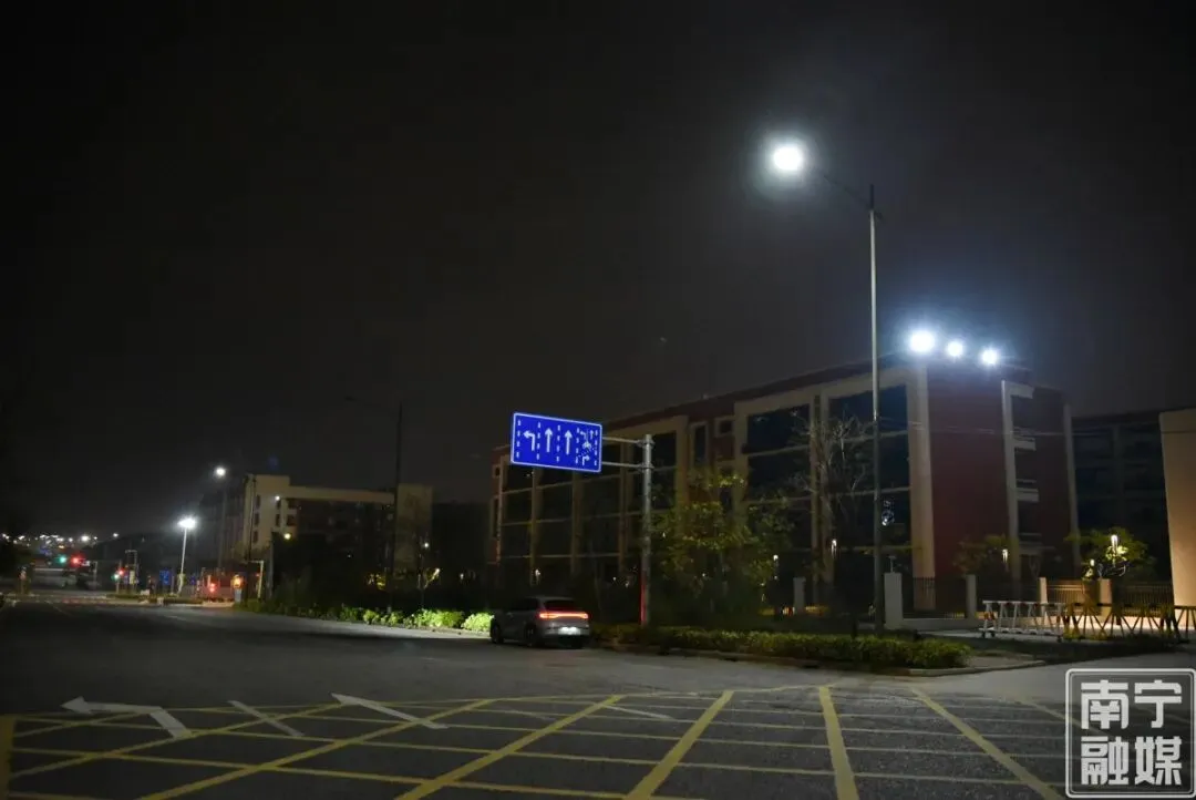 2月7日晚,正值寒假,记者走访发现,校园周边略显安静,但南宁市良庆区六里路小学、南宁市华海路初级中学、南宁市秀田小学五象校区、南宁市良庆区良庆镇中心学校等校门口的路灯依旧“坚守岗位”。明亮的光线不仅扫去了冬日的冷清,也为周边晚归的居民驱散了黑暗。然而就在不久前,这里的夜间照明还是家长和老师心中的“堵点”。