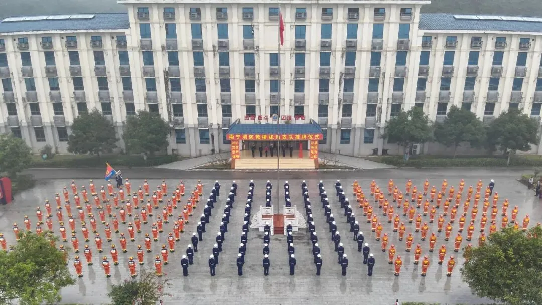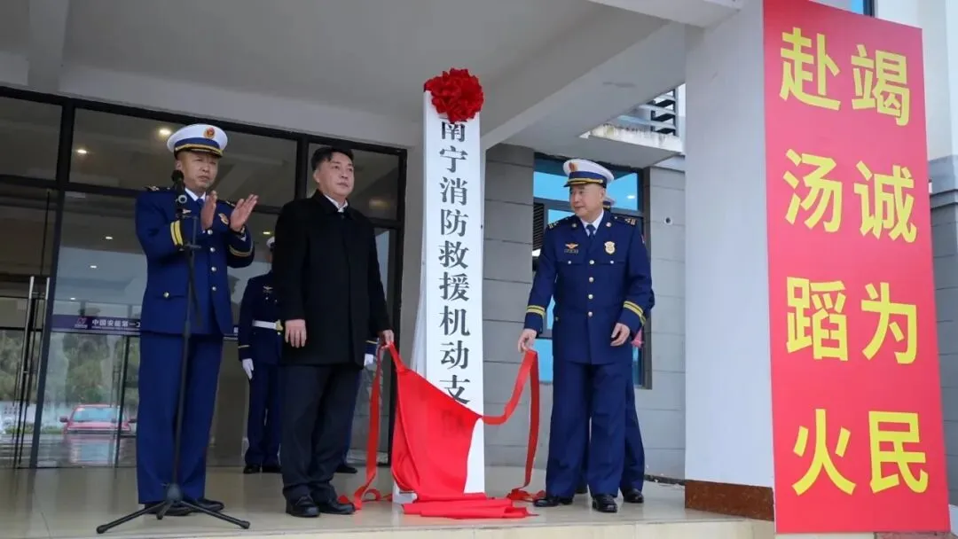 2026年2月10日上午10时,南宁消防救援机动支队庄严举行挂牌仪式,云南消防救援机动总队林洪友副总队长与自治区应急管理厅陈捷副厅长共同揭下红绸,任秀峰政委致辞,标志着这支全国编制规模领先的机动支队正式启航。广西消防救援总队魏广军政委、自治区林业局李巧玉副局长、总队杨俊雄处长和自治区林业局黄可先防火专员参加仪式,共同见证这一特殊的日子,赋予仪式以"国家队"的厚重分量。