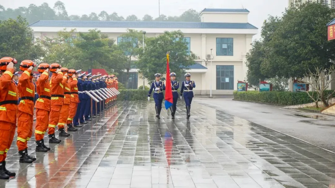 支队自2023年6月进驻以来,全体指战员始终坚守应急救援国家队、主力军定位,先后圆满完成全区多起森林火灾扑救、抗洪抢险等急难险重任务,得到了驻地党委政府和人民群众的高度认可。作为新时代国家综合性消防救援机动队伍的第一代创业者,一定以此次挂牌仪式为契机,以争创先进支队为目标,振奋精神、昂扬士气,在自治区党委政府、应急管理厅和总队的正确领导下,高举习近平新时代中国特色社会主义思想伟大旗帜,坚持党的绝对领导,牢固树立“四个意识”,不断增强“四个自信”,坚决做到“两个维护”,践行“对党忠诚、纪律严明、赴汤蹈火、竭诚为民”的庄严承诺,奋勇担当起时代赋予的历史使命,努力当好党和人民的“守夜人”,用忠诚和勇敢谱写支队全面发展建设的新篇章,全面践行“扎根八桂大地,建设壮美广西”的庄严承诺。
