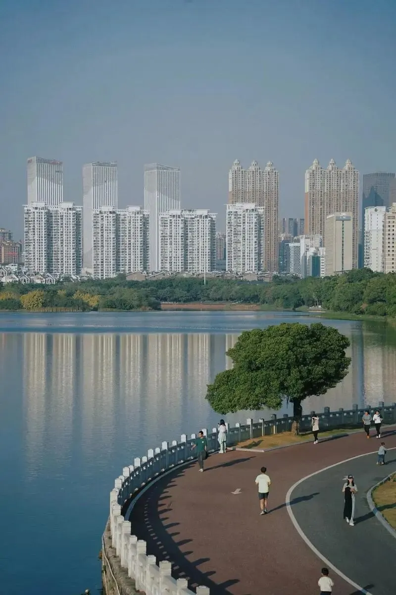 想加码就把南湖也串上,环湖步道平,树荫多,坐一会儿就不急,夜里去会展中心与民歌湖那一带看灯,江面一照更有味。