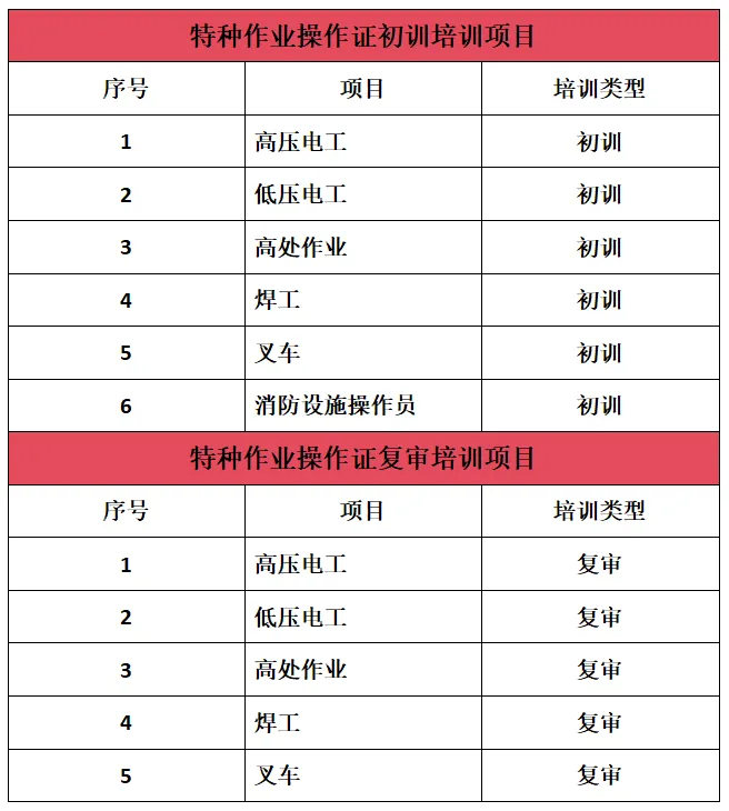 低压/高压电工证、焊工证、高处作业操作证、制冷与空调作业操作证、叉车证、消防设施操作员证等考证培训,全国通用,上岗必备!