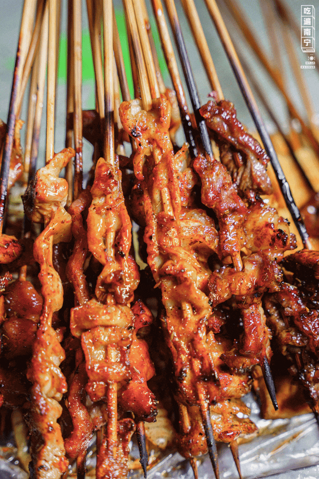 从路边摊吃到了有门店,偏香辣型的宾阳烧烤,辣度比较高。