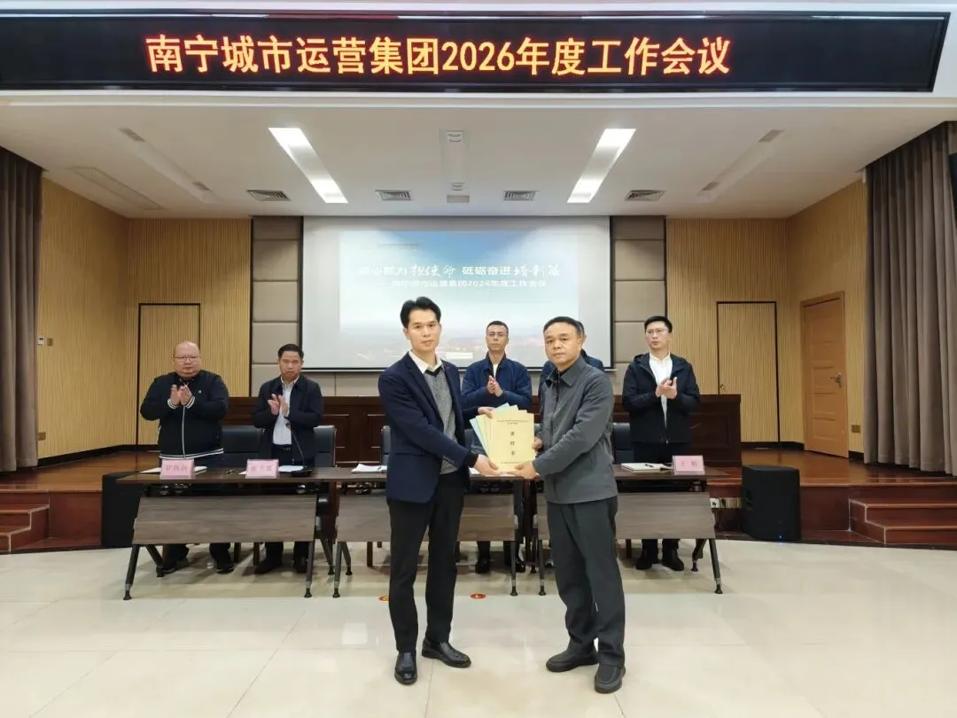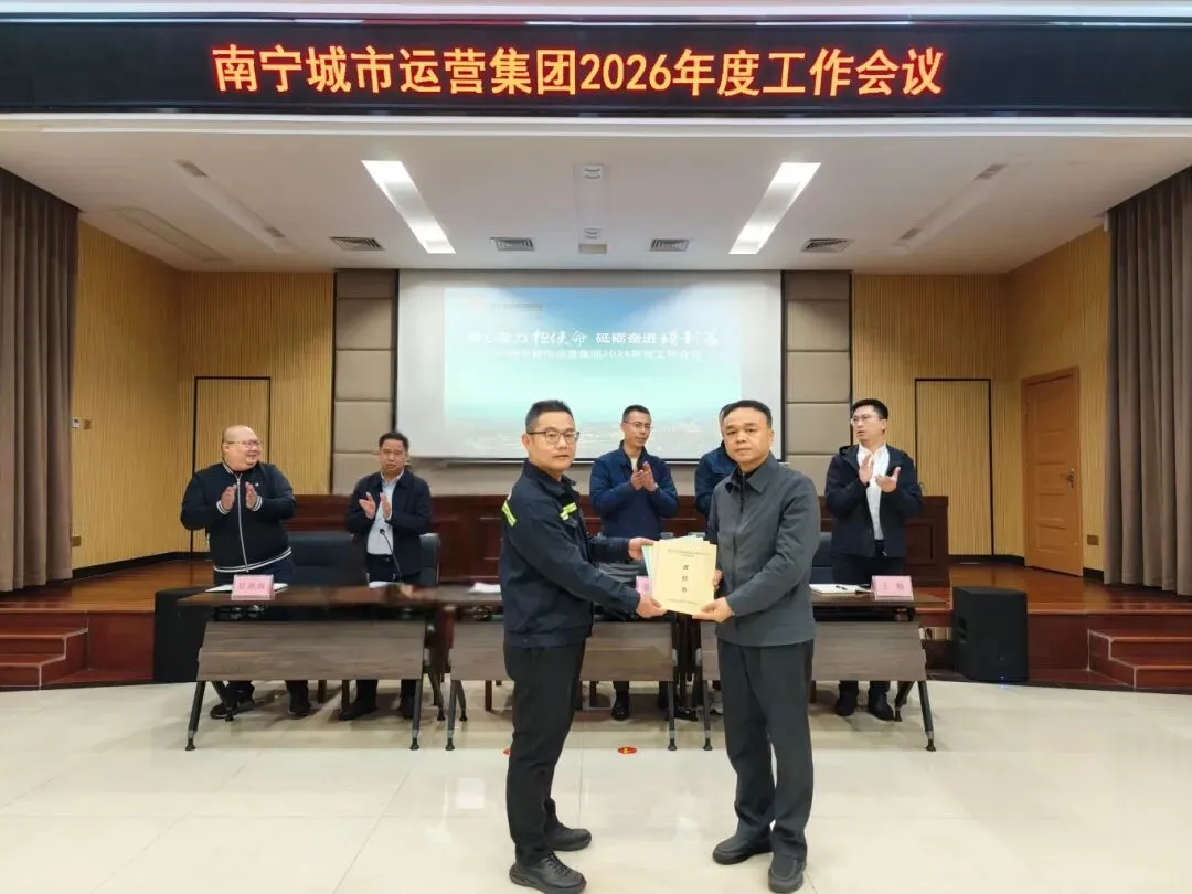 立足新征程,乘势再出发。他表示,运营集团2026年的总体工作思路是:深入贯彻南宁城投集团“打造新型城市建设运营服务商和产业发展服务商”的定位,主动对接融入南宁城投集团“1+2+3+4”总体思路,以党建为引领、以改革创新为动力、以专项行动为支撑,补短板、强弱项、育新极。全体干部职工要主动适应行业转型趋势,重点做好五方面工作:强化政治引领,确保集团发展与上级决策部署同频共振;深化党建融合,推动党建工作与业务发展相互促进;加快转型升级,在市场化拓展、智慧化建设、平台化发展上实现新突破;筑牢发展根基,统筹抓好安全生产、风险防控和廉洁建设;践行国企担当,在服务城市发展、增进民生福祉中展现更大作为。