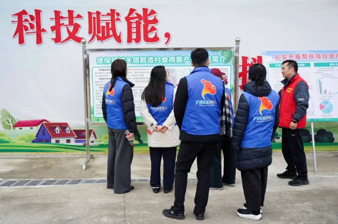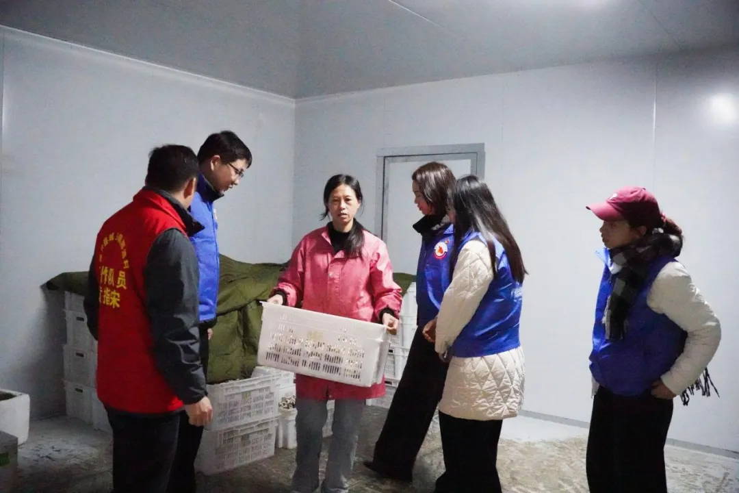 随后,党员同志深入那造村食用菌产业基地开展实地调研,重点考察种植规模、培育技术、产销模式及发展规划等核心环节。通过现场交流,针对产业发展过程中合作经营、合同签订等法律问题,结合专业法律知识提出规范化建议,切实防范经营法律风险,为特色产业依法健康发展提供专业支撑。