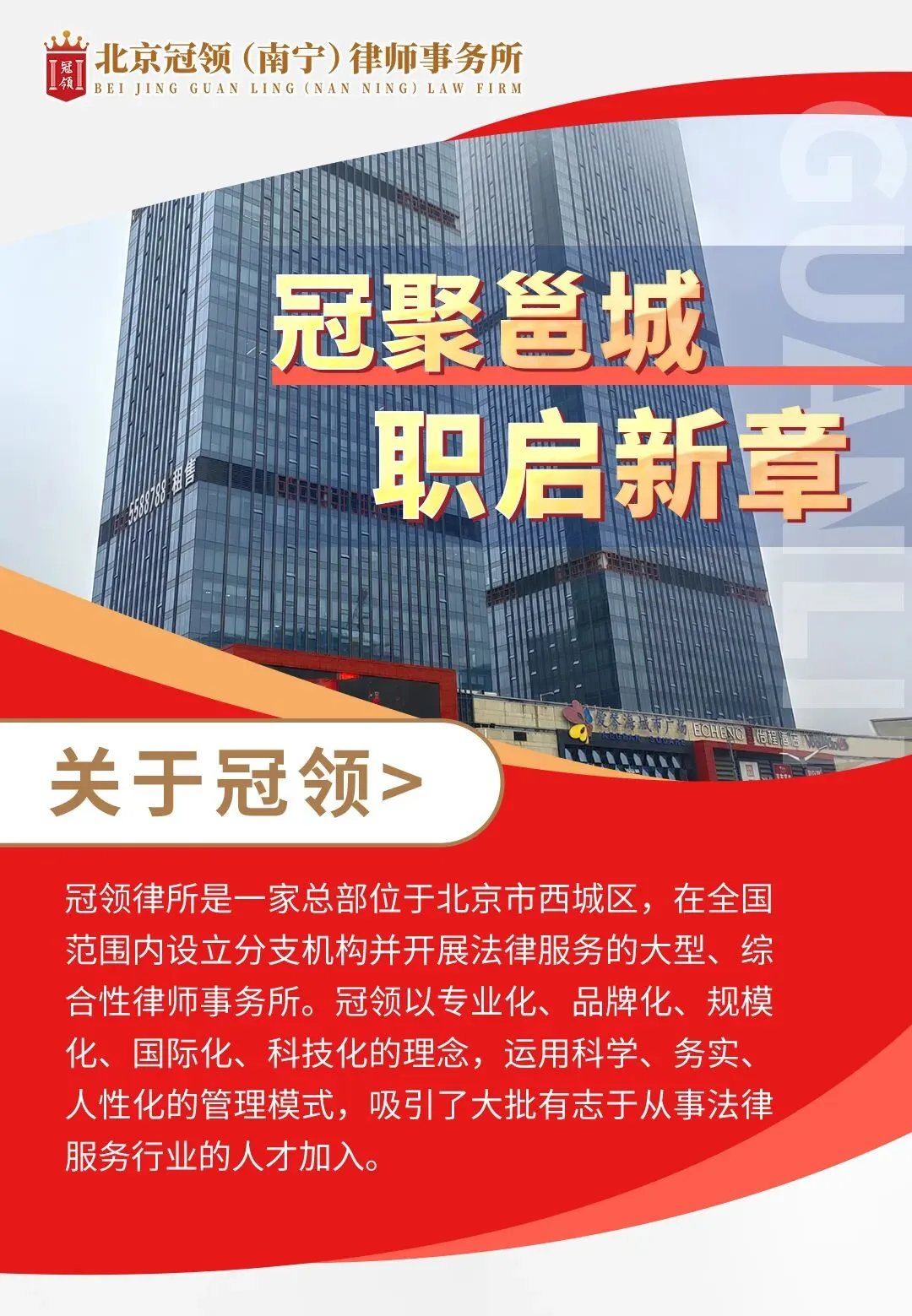 冠聚邕城,职启新章|冠领(南宁)律师事务所诚邀英才加入!