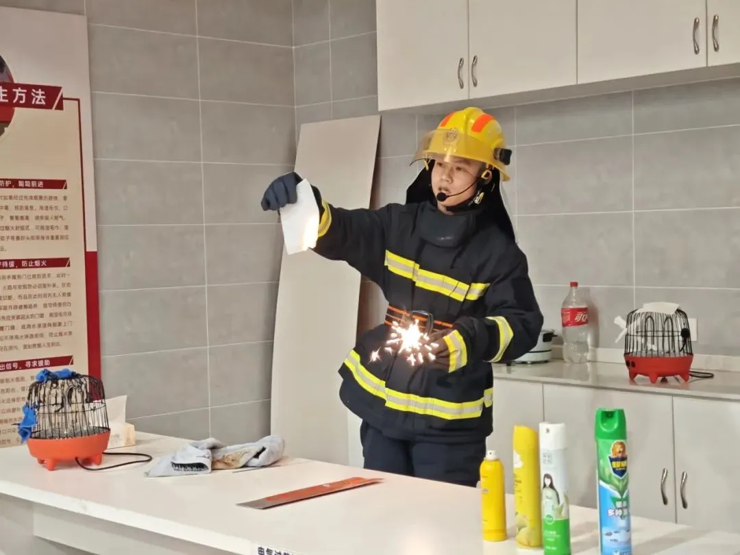 取暖器安全测试、喷雾遇明火演示、面粉粉尘燃烧实验、仙女棒的危险,四类真火实验震撼上演!直观的火焰与迅猛的火势让大家深刻认识到隐患的危害,“蓝朋友”结合实验现象现场科普安全防护关键知识。“原来日常小事里藏着这么多安全学问”,在震撼与感悟中,第二枚 “警示福” 收入囊中。