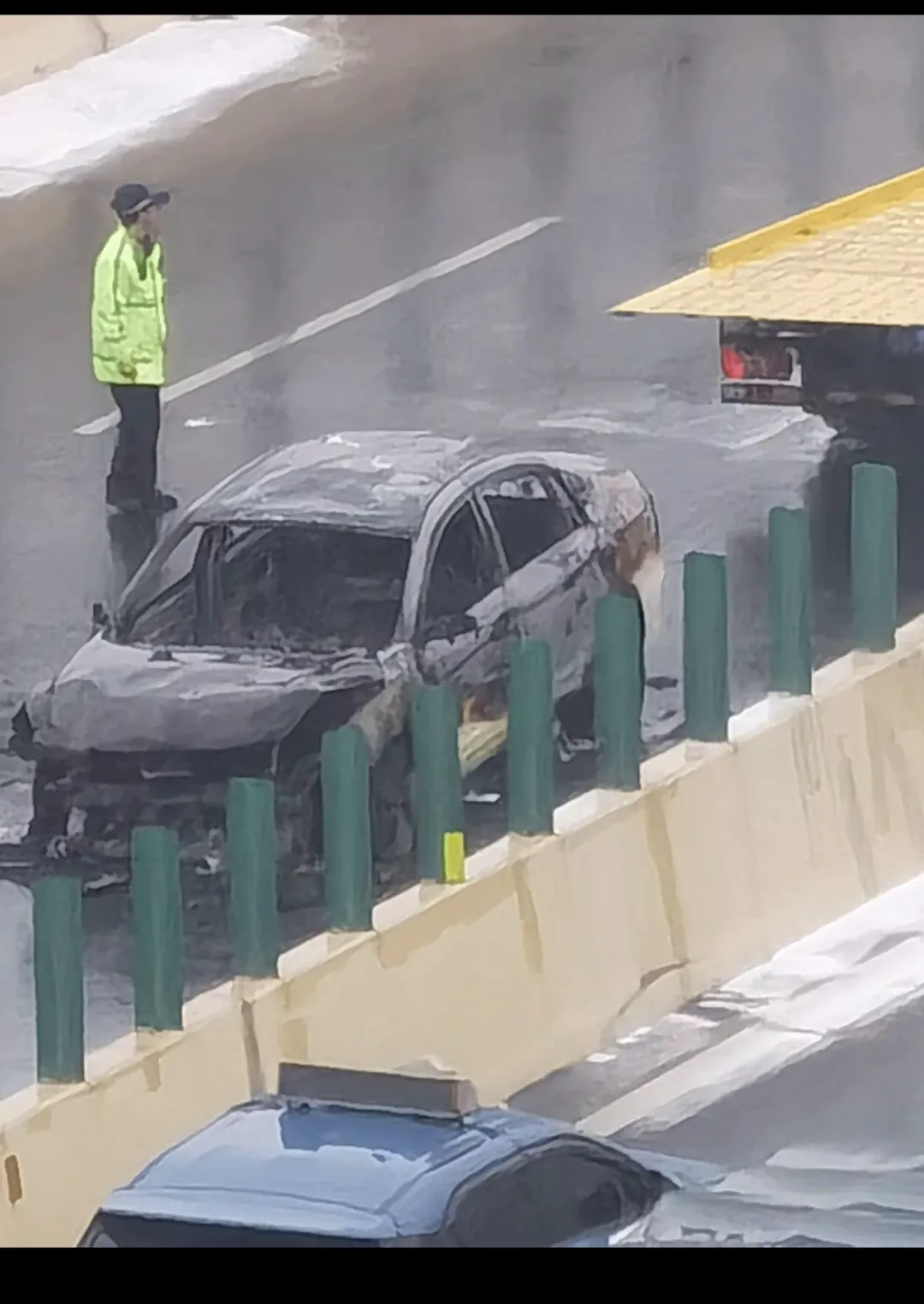 ▲事故车被烧得只剩下外壳