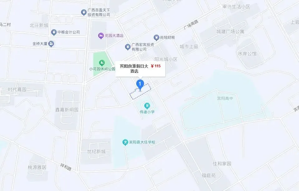 此次拍卖的宾阳良源假日大酒店的房产,位于宾阳县商贸城广场小区商业街南面,就在伟迪小学旁边,距离宾阳高中比较近的。从位置来看,在宾阳县城还是不错的,酒店大门口前面有一个小型广场,可以停放不少车辆,停车方便,然后小广场出来就是广场南路。这个地方,用来开酒店酒楼应该都是不错的选择。