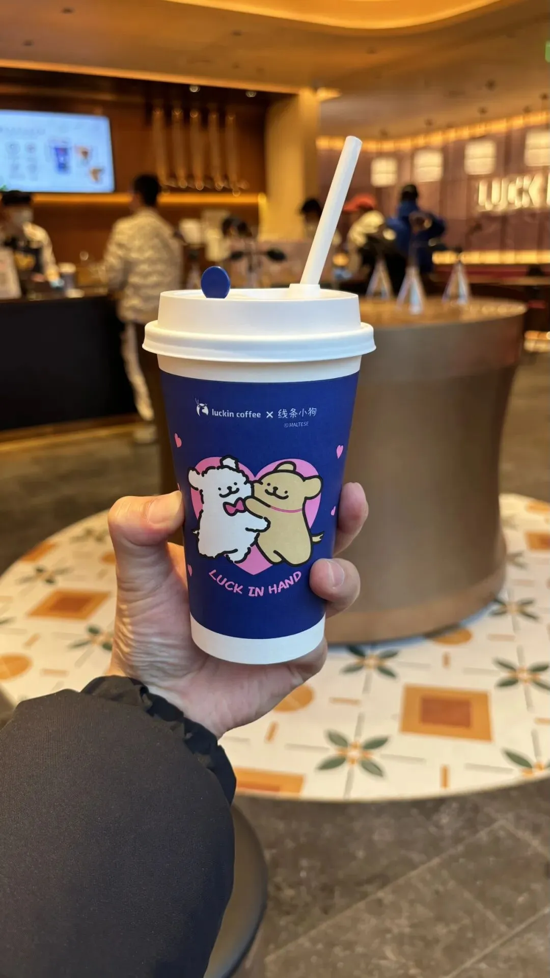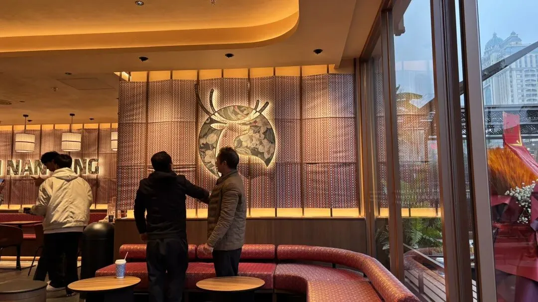 这家航洋城的瑞幸咖啡悠享店风格很广西化,里面的装饰采用广西壮锦艺术,类似桂小厨餐厅,而且位置很大可以坐下来慢慢喝聊天,普通店基本都是座位少少甚至没有座位……