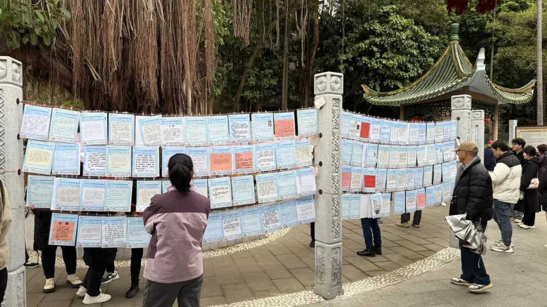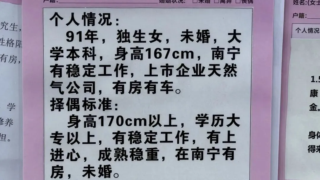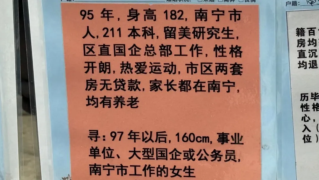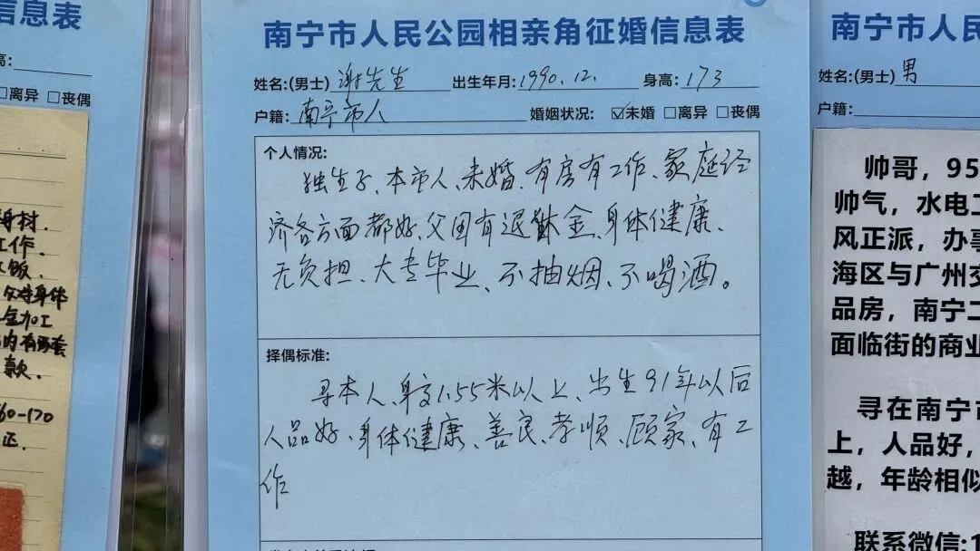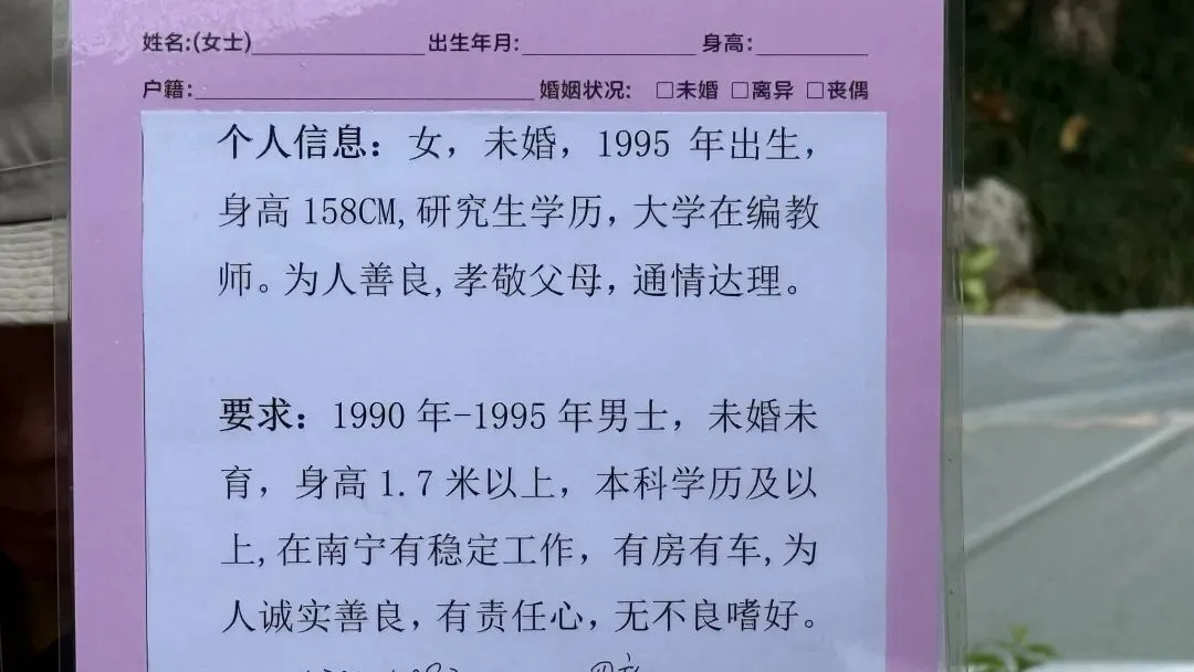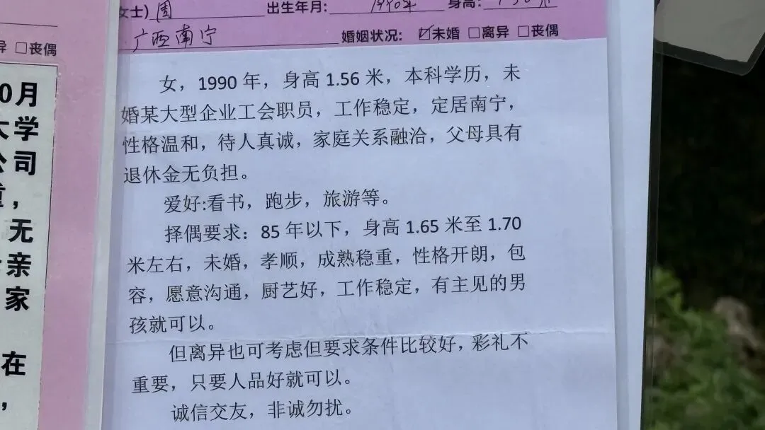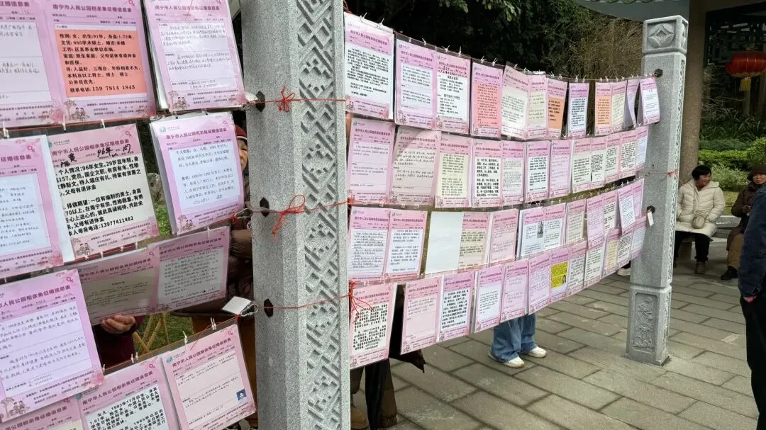 文章:年底了,南宁人民公园相亲角人真多啊!不谈彩礼,只谈房车编制学历身高