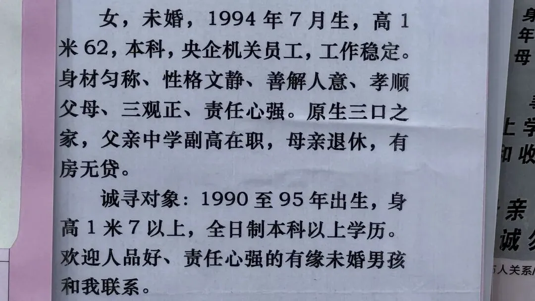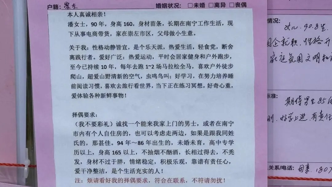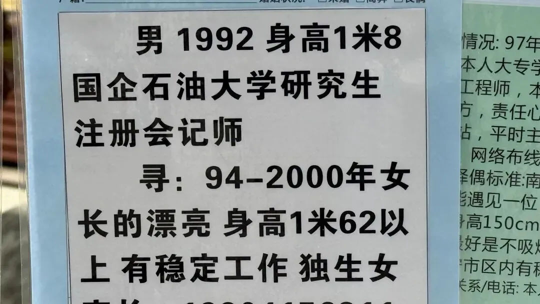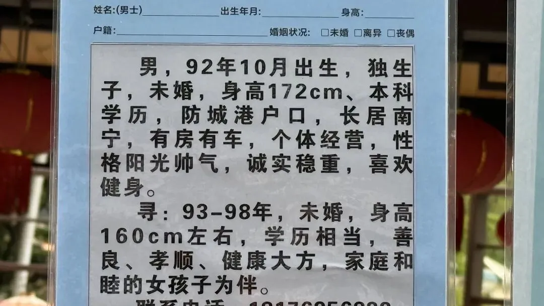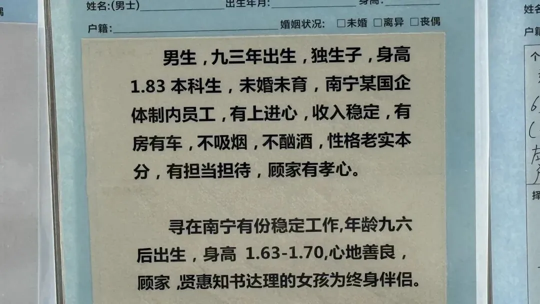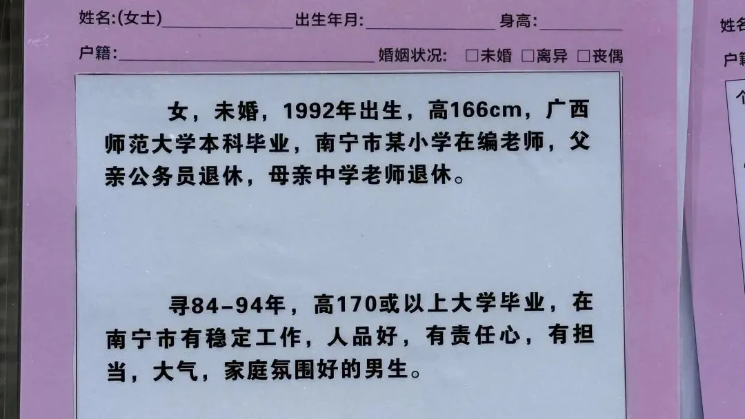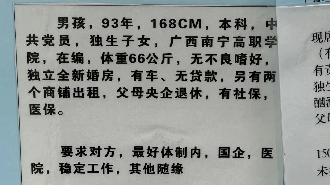 文章:年底了,南宁人民公园相亲角人真多啊!不谈彩礼,只谈房车编制学历身高