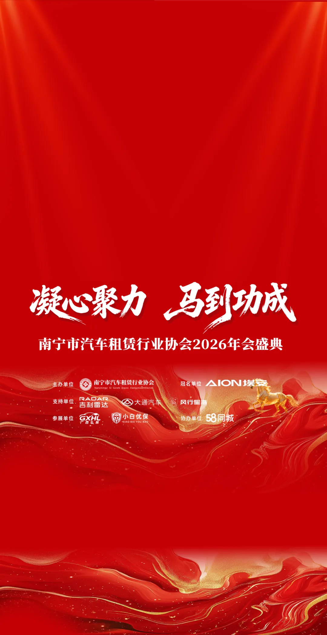 征程万里风正劲,重任千钧再出发。南宁市汽车租赁行业协会2026年会盛典的成功举办,是一次凝聚共识、共谋发展的动员。在主管部门的悉心指导下,协会将与全体会员同心同德,以"规范"塑形象,以"安全"赢未来,以"凝心"为基础,以"聚力"为行动,以"成功"为目标,共同推动南宁汽车租赁行业从"价格战"走向"价值战",为现代服务业高质量发展作出新的更大贡献!