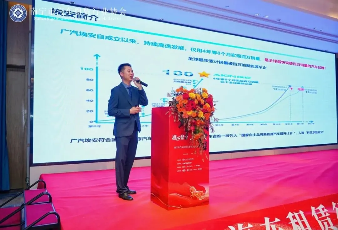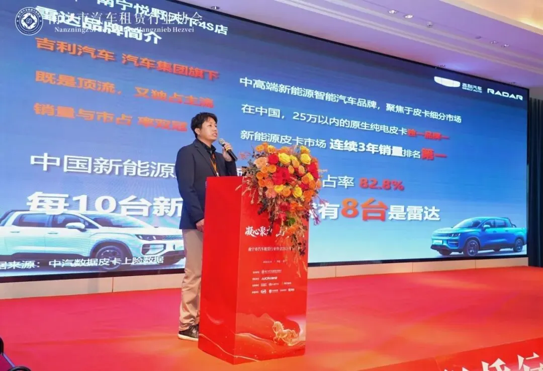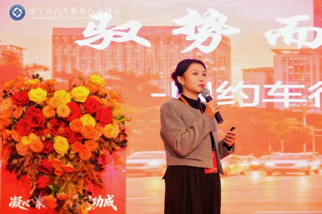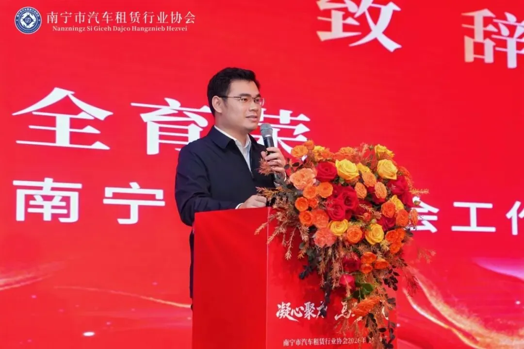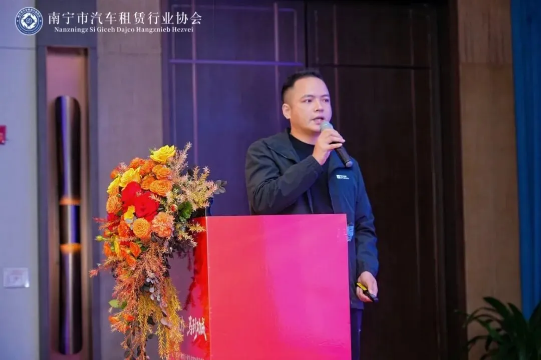 南宁市道路运输发展中心出租车科科长卢俊宏代表交通运输主管部门致辞,向行业伙伴表示感谢。他指出,汽车租赁是城市交通的活跃细胞,更是守护千家万户平安团圆的社会责任。