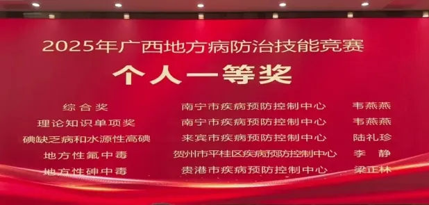 刘伶俐同志代表广西参加2025全国预防接种职业技能竞赛获得疾病控制组个人二等奖。