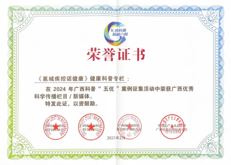 权威平台:中心微信公众号粉丝数突破 220万,已成为市民获取健康信息的重要平台。旗下专栏《邕城疾控话健康》被评为 “广西优秀科学传播栏目”。