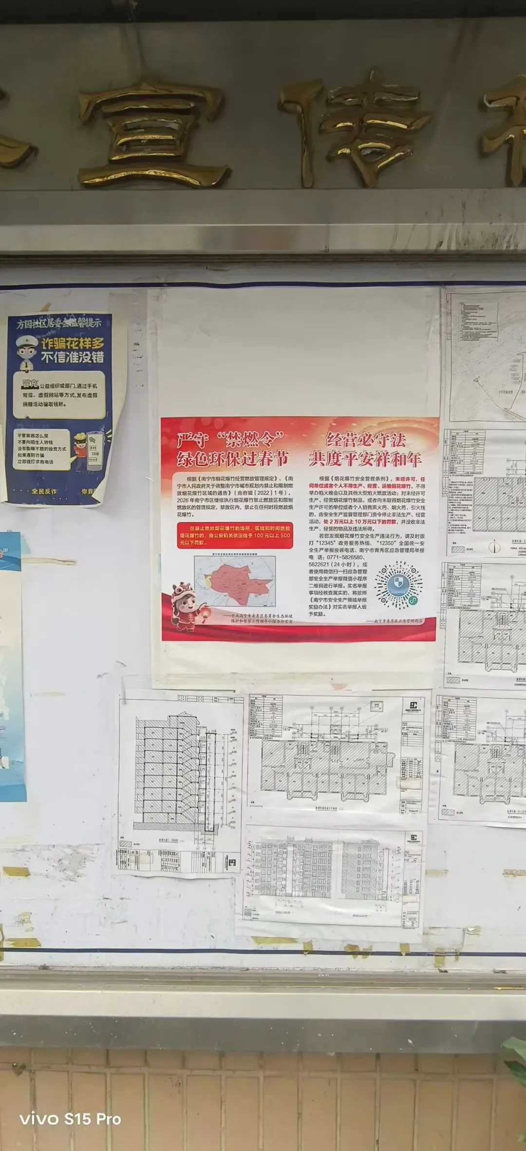 在小区宣传栏、出入口门岗等显眼位置,广泛张贴禁燃限放宣传海报。
