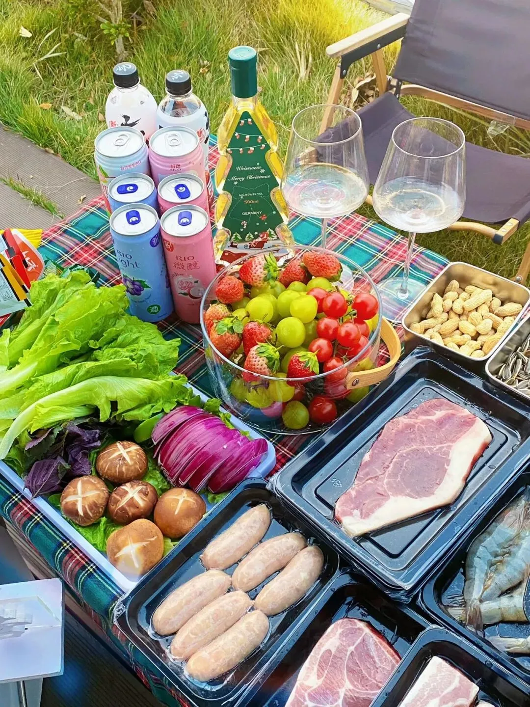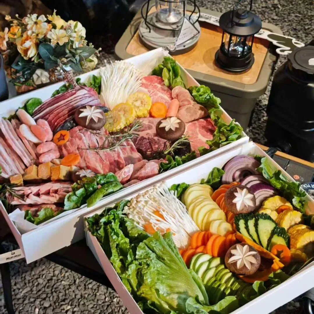 天幕桌椅、餐具、卡式炉等一应俱全,加上营地精心准备的烧烤烤肉食材和特色调料,让您拥有美好的户外美食体验。