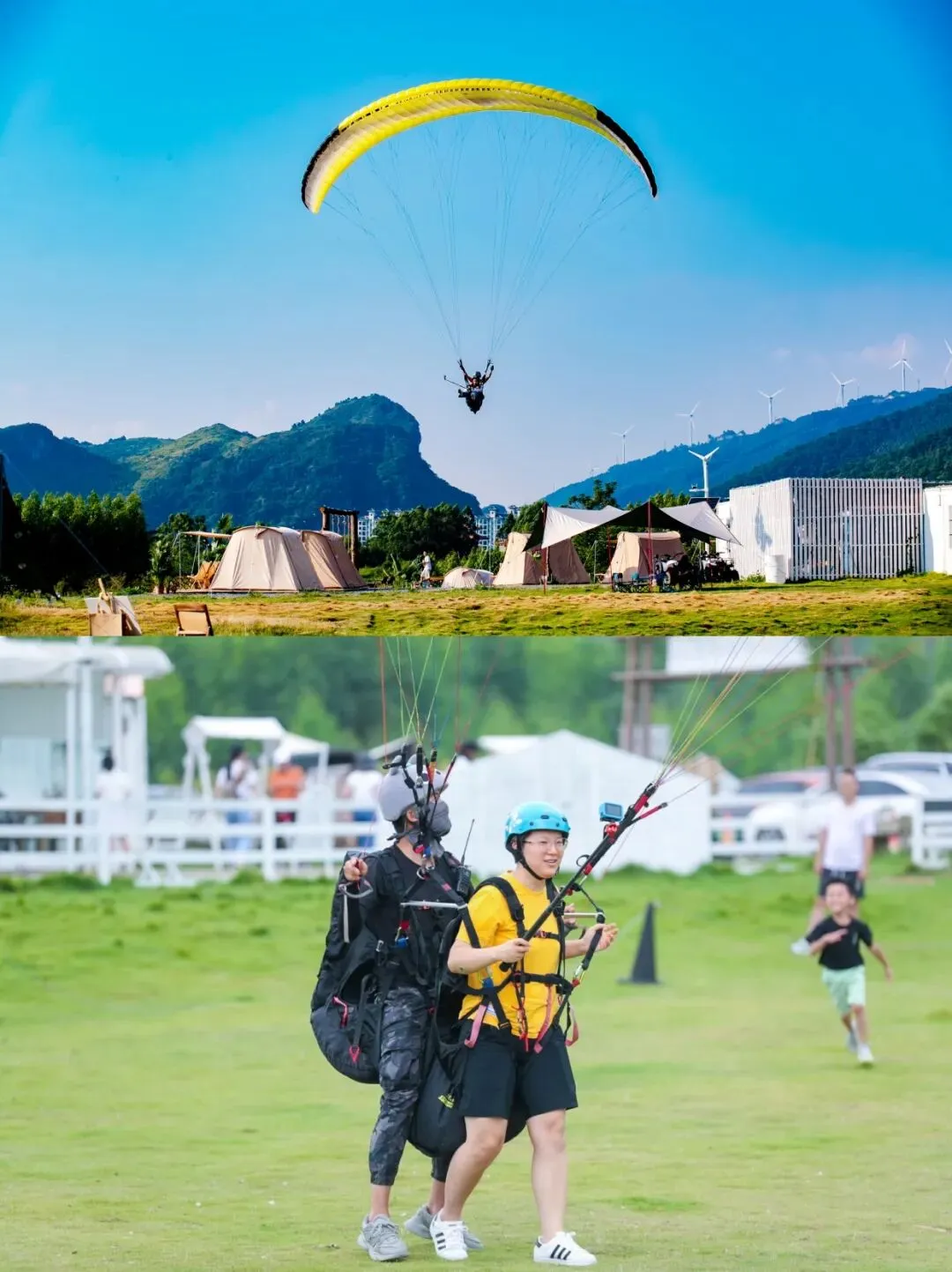 在专业教练指导下,乘滑翔伞翱翔天际,以独特视角俯瞰大明山新春景象。