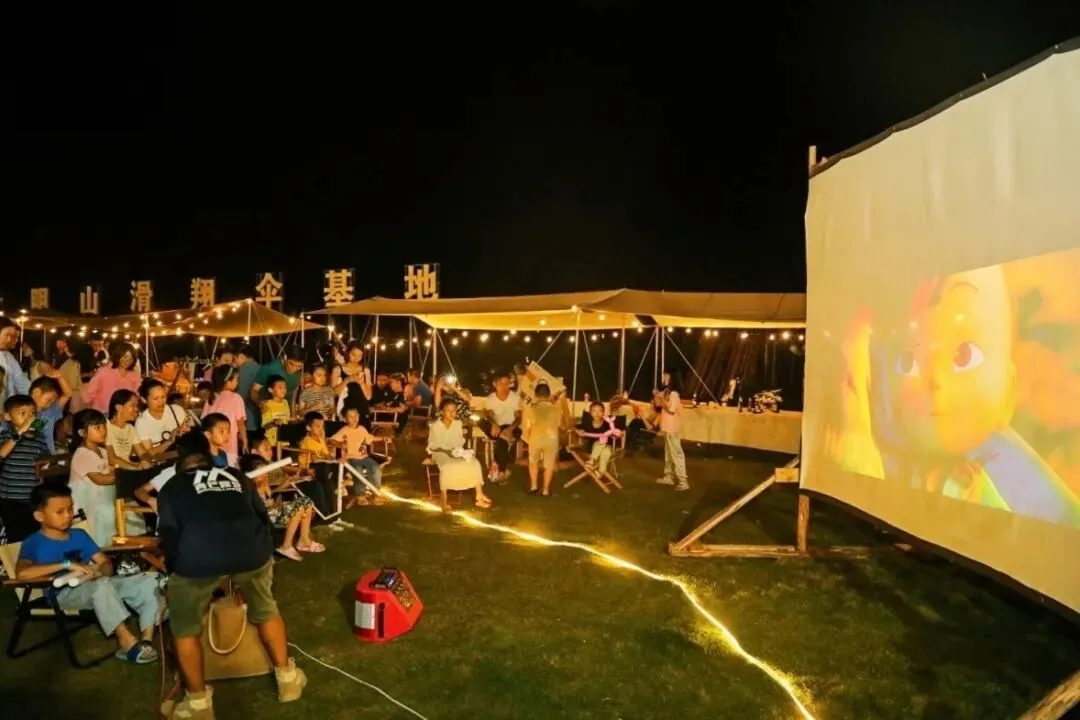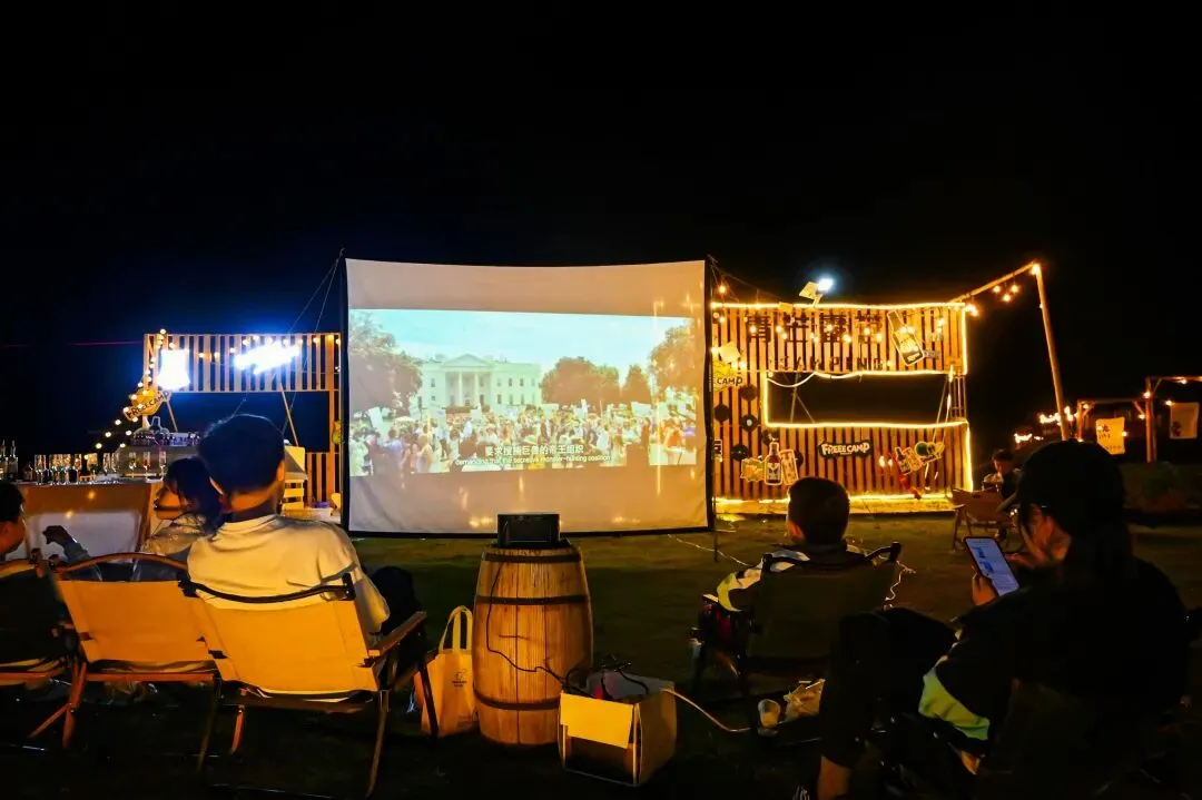 在清新的山野空气中,与亲友共赏星空下的露天电影,享受悠闲的新春夜晚。