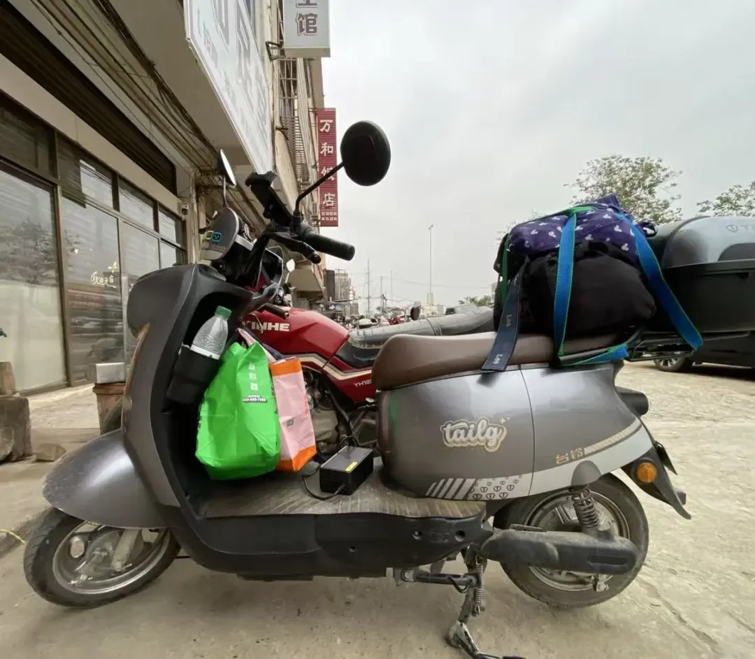 据安安介绍,2025年12月20日,她从上海闵行区出发,出发前已将所有行李打包寄回,她只带了两个背包绑在车座上,另外两个小袋子则放在电动车的挂包里。